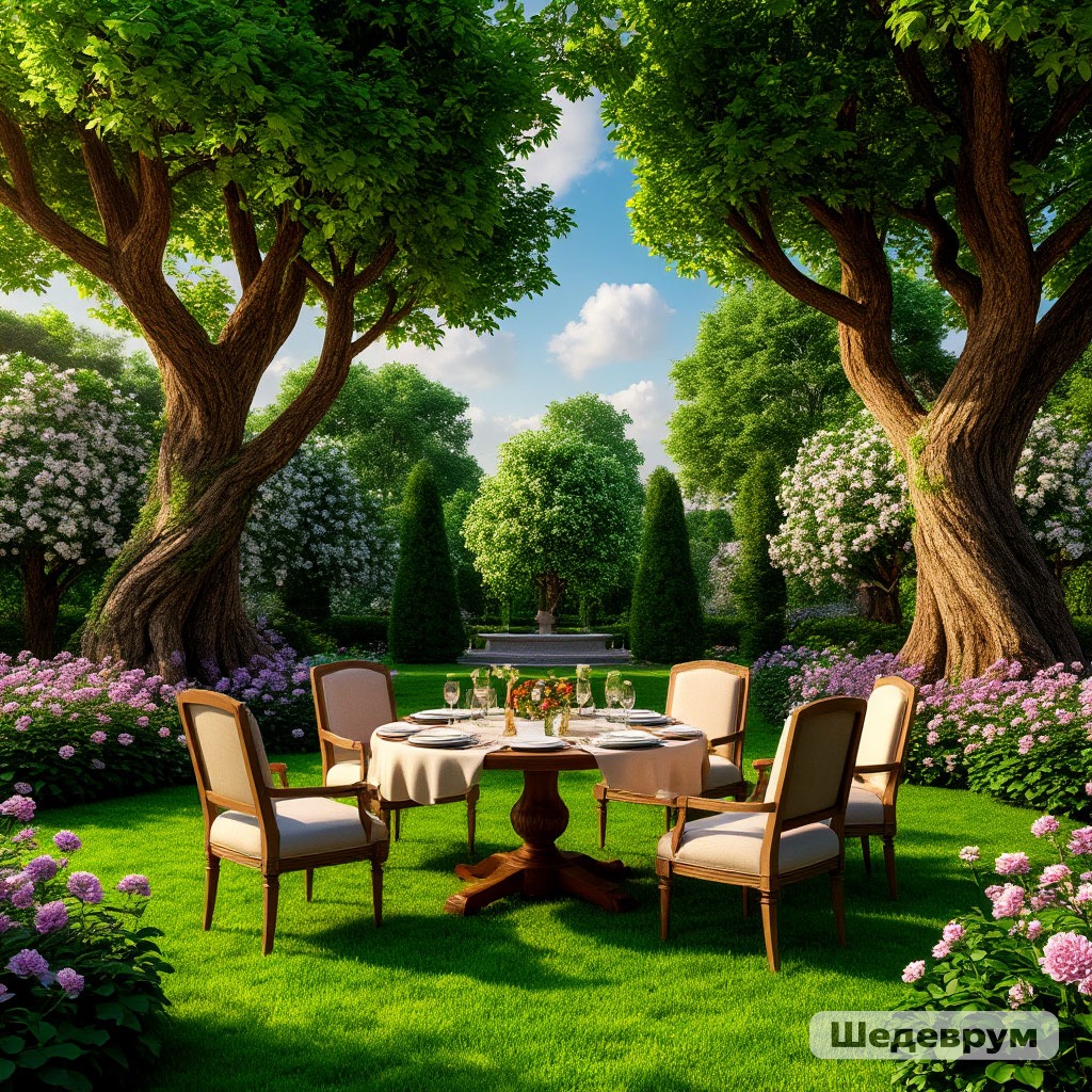 Прилегающая к замку садовая территория представляла собой парк с аккуратно подстриженными газонами, невероятно красивыми клумбами, садовые дорожки были вымощены плоским камнем. Большие и не очень деревья соединяясь кронами создавали спасительную тень. Имелись здесь и фонтаны и небольшое озерцо с водными лилиями и красивыми рыбками. Через озеро был перекинут небольшой мостик, на котором стояла маленькая скамейка.