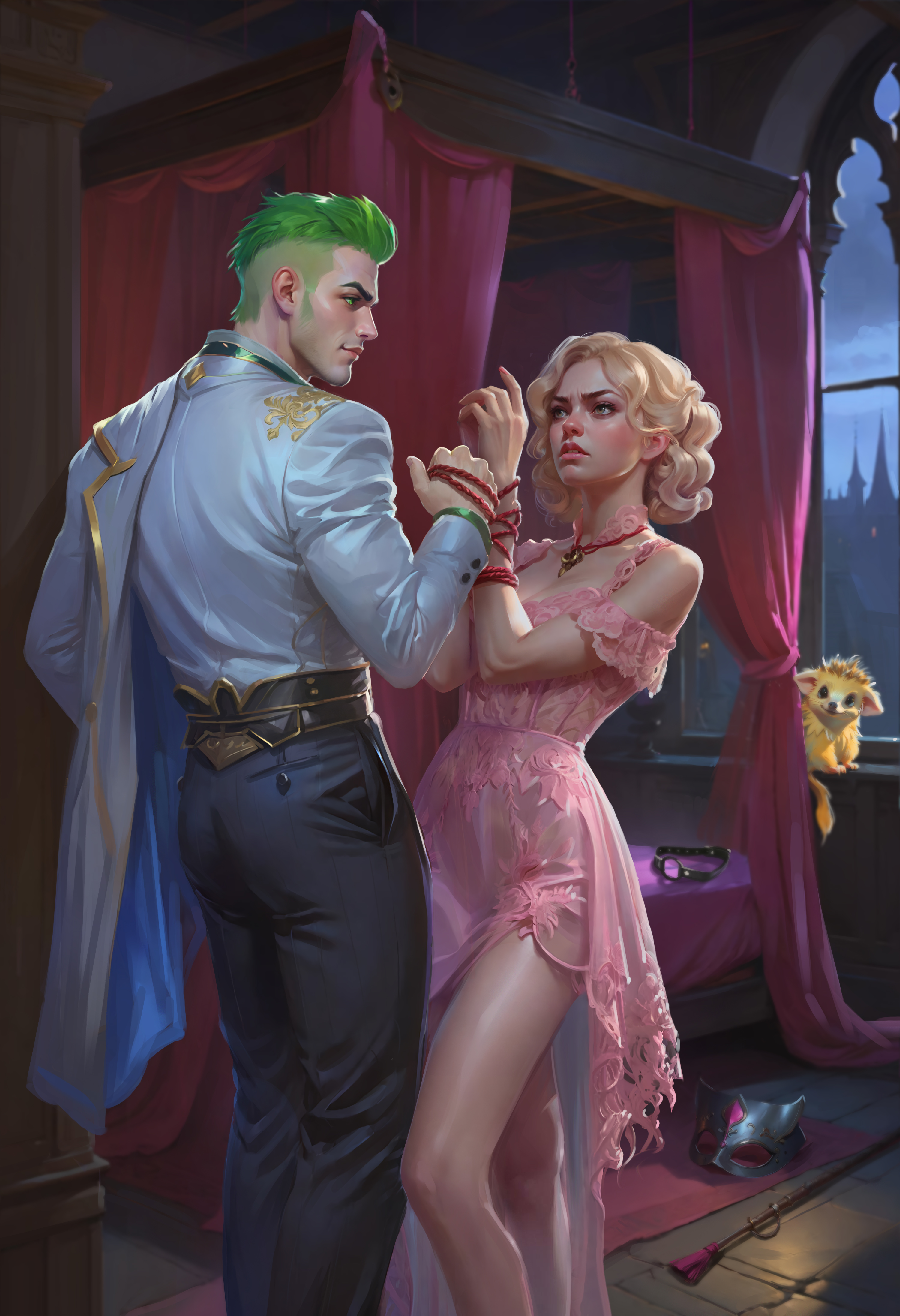 — Спасибо, хочу ответить тем же, если ты выйдешь ко мне, — он приблизился и провёл ладонью по ткани балдахина. — Или предпочитаешь сразу приступить к делу?