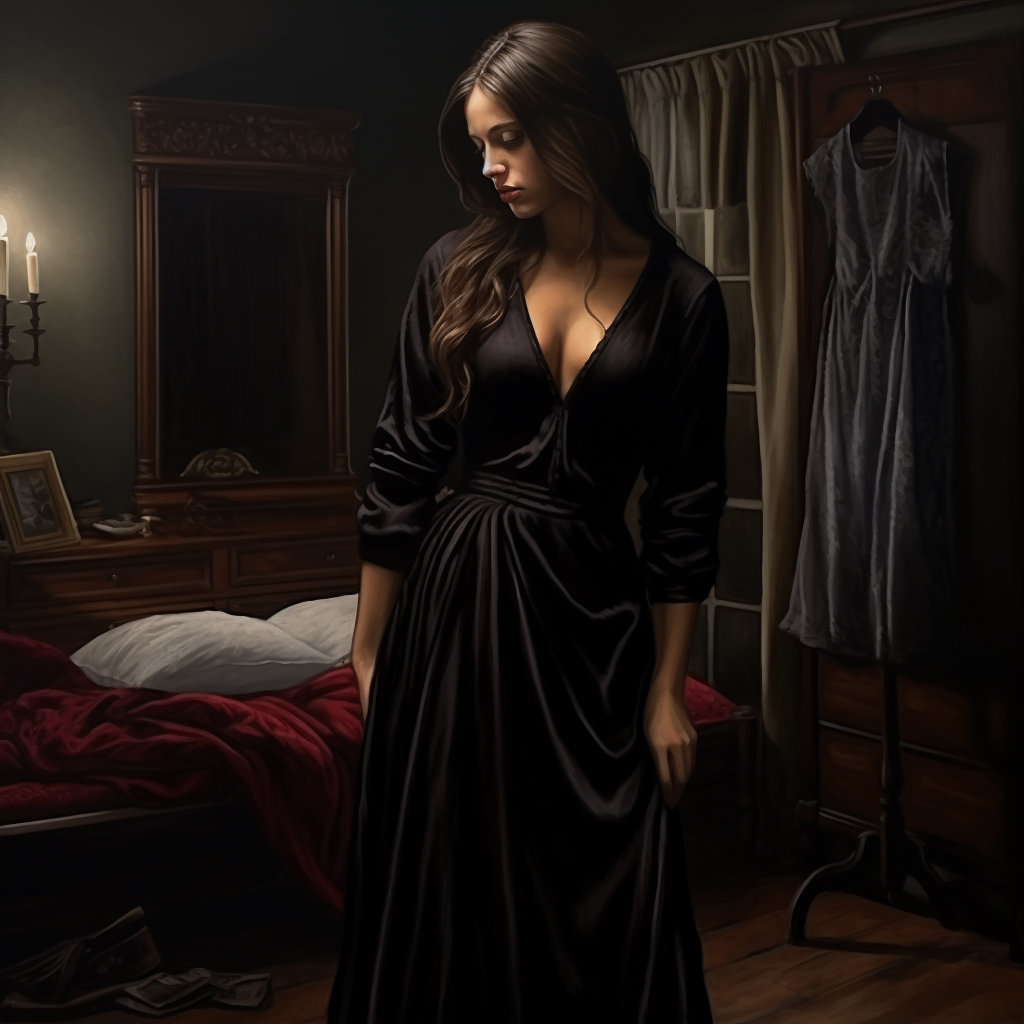 У него в руках я приметила прекрасное платье из черного бархата. В другой руке он держал длинную ленту для шнуровки. Я вспыхнула, вспомнив, что почти раздета, попыталась прикрыться руками.