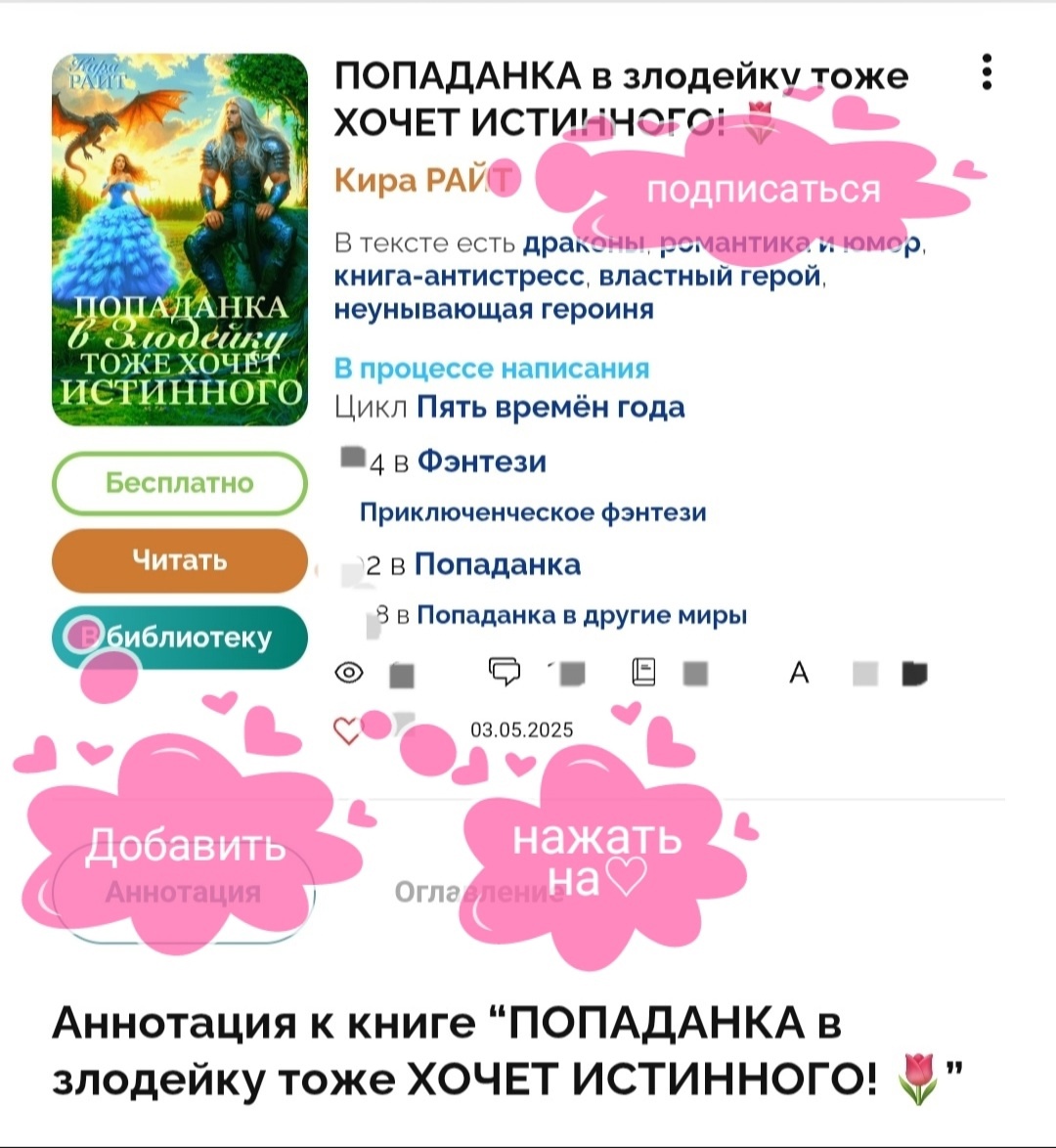 Благодарю Вас за её поддержку добавлениями в библиотеку, своими сердечками и комментариями ♥