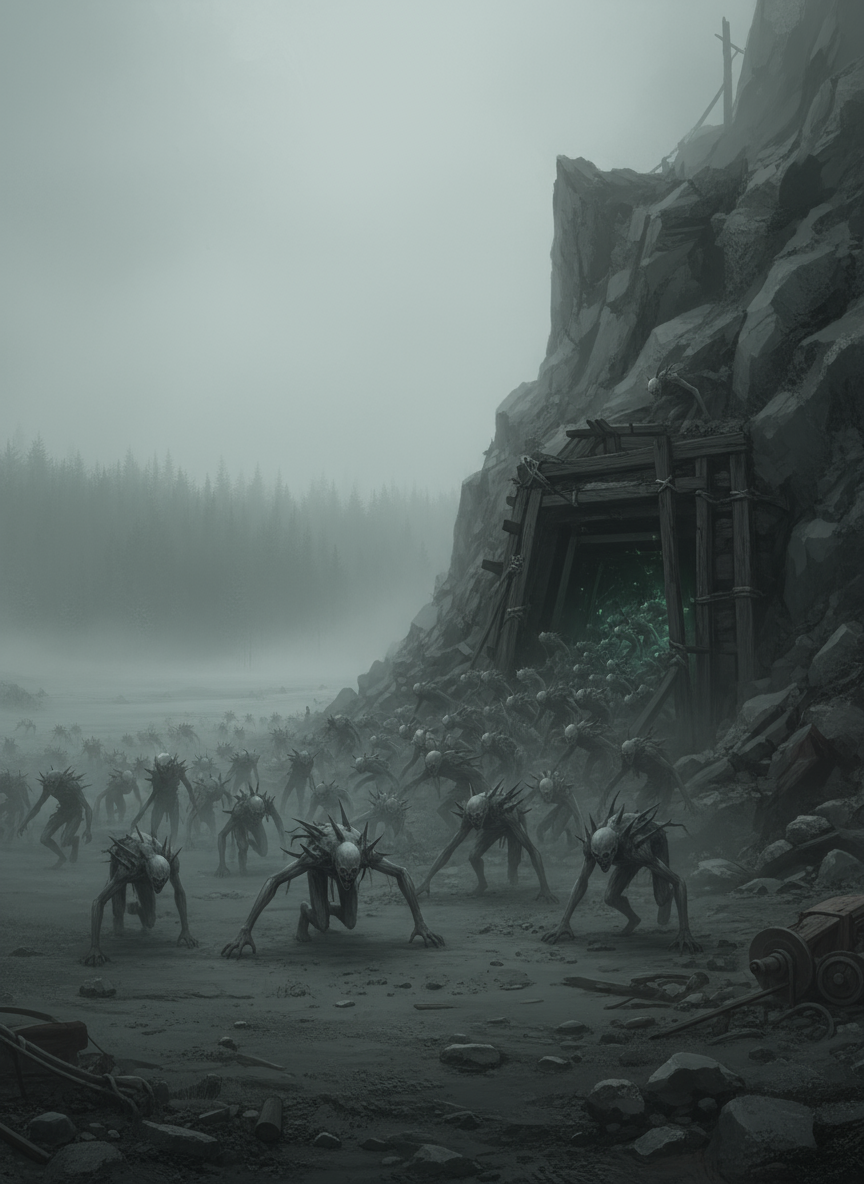 — Это не просто имя. Это приговор. Наш приговор. Потому что мы их и выпустили. — Он снова встал и подошёл к карте, его палец лег на запад, на иззубренную линию гор. — Серые Хребты. Глубочайшие шахты Империи. Мы копали так жадно и так глубоко, что проломили потолок над бездной. Первый прорыв произошёл именно там, в глубине, куда не проникал свет. Мы разбудили то, что спало под нашими ногами миллионы лет.