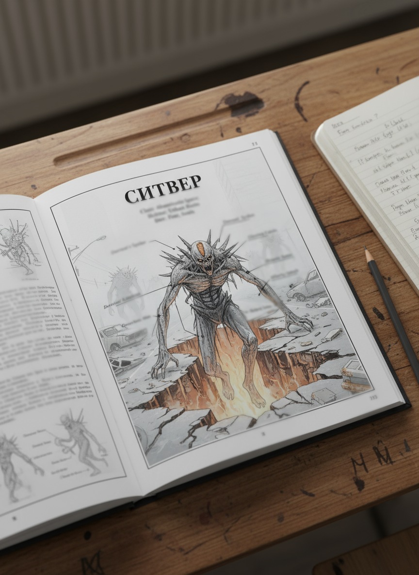 Серый свет, пробивавшийся сквозь запылённые окна, казалось, впитывал в себя все звуки, оставляя после лекции гулкую, тревожную тишину. Нам вручили краткие справочники — тонкие учебники, от которых веяло холодом официальных отчётов о смерти. Известных видов Бризм было не больше двадцати, но эта цифра обманывала. С каждым днём их становилось больше. Майор Вейн рассказывал, что они эволюционируют, приспосабливаются к нашему климату, а некоторые... некоторые и вовсе научились принимать человеческую форму. От одной этой мысли по коже бежали ледяные мурашки. Мерзкие твари.