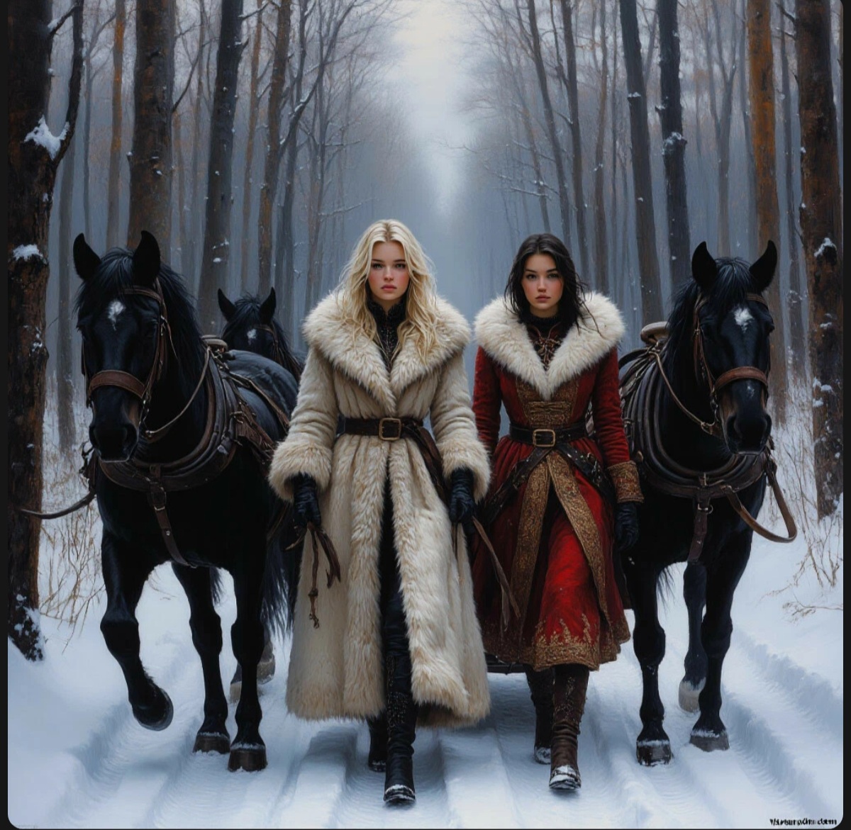Лиза вскрикнула, Марина вцепилась в руку Алёны. Прохор попытался развернуть сани, но разбойники уже окружили их, отрезая путь к отступлению.