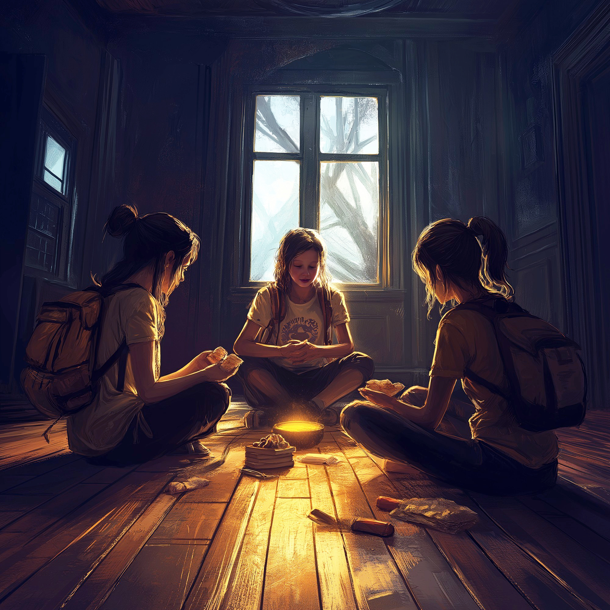 Стемнело. На стенах шевелились проникающие через выбитые окна тени. Лиз шёпотом рассказывала глупые истории, чтобы отвлечь себя и скоротать время. Печенье кончилось.