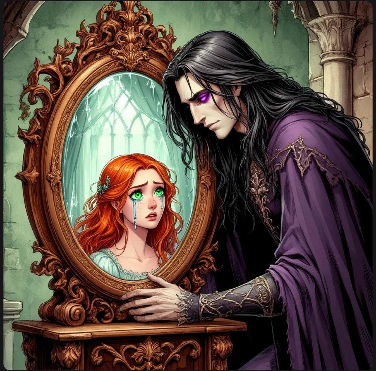 По пути в библиотеку она остановилась у зеркала. Отражение показало девушку с бледным лицом и тревожными глазами. «Кто ты теперь? Дочь, готовая на всё ради родителей? Невеста Кощея? Или просто пешка в чьей‑то игре?»