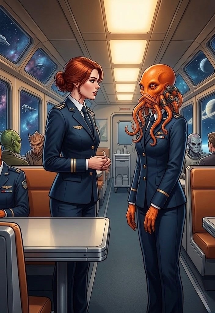Есть три типа пассажиров, которых я терпеть не могу. Первые — те, кто считают, что проводник обязан читать их мысли быстрее, чем они сами успеют эти мысли сформулировать. Вторые — те, кто требуют «что-нибудь особенное», а потом делают такое лицо, будто их лично оскорбили, когда выясняется, что межзвездный экспресс не пятизвездочный дворец с личным поваром, массажистом и фонтаном из игристого.