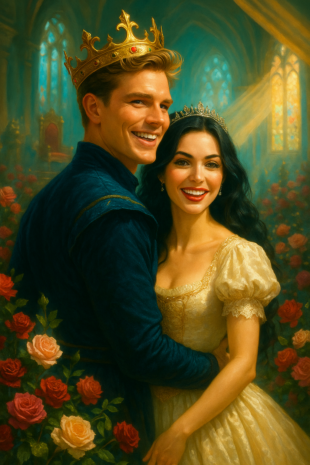 Ирэна шла, точнее, плыла по этому ковру из цветов, являя собой воплощение торжествующей красоты и царственного величия. Её свадебное платье, сотканное из белоснежного атласа и кружев, привезённых с далёких островов, отливало перламутром при каждом движении. Невероятной длины шлейф несли четверо юных пажей в ливреях королевских цветов, он тянулся за ней, колыхаясь словно живое облако. Платье, скроенное с безупречным мастерством, подчёркивало каждую линию безупречной фигуры, открывая изящные плечи и шею, украшенную лишь нитью редких жемчужин — скромно, но элегантно. Чёрные волосы были уложены в сложную корону из тугих кос и локонов, увенчанную изящной диадемой с крупными бриллиантами, искрящимися под солнцем. Ирэна сияла: не драгоценностями и роскошью наряда, но внутренним светом, уверенностью. Её губы были тронуты лёгкой, счастливой улыбкой, обращённой к толпе, но тёмные глаза, скользившие по ликующей массе, хранили глубину и спокойствие полководца, видящего поле своей первой великой победы.