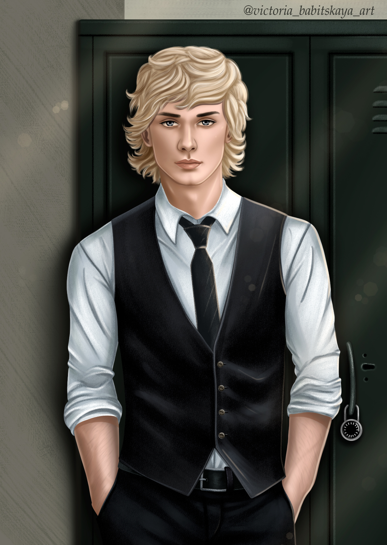 Стройный блондин с медовыми слегка вьющимися волосами, убранными в низкий хвостик. Точёные слегка приподнятые скулы, прямой ровный нос и холодные серые глаза. Он шёл сквозь толпу пассажиров, прятавшихся на вокзале из-за непогоды в ожидании поезда, и они расступались перед ним, как лёд — перед ледоколом.