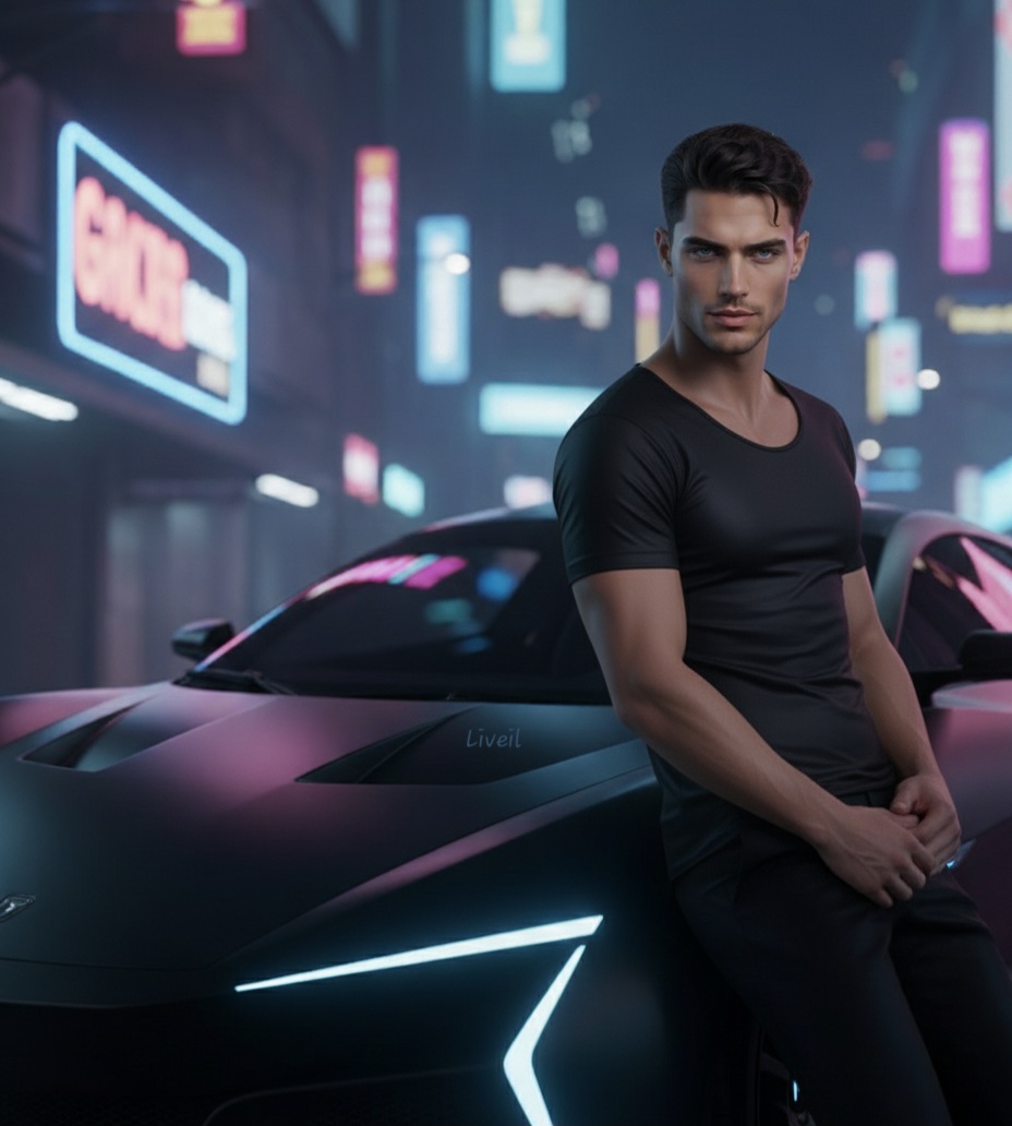 Они оба сели в машину. Кей занял место водителя, и двигатель «Ночного Призрака» ожил с низким, хищным рыком. Салон погрузился в полумрак, освещённый лишь вспышками неона, отражающимися в штормовых глазах Кея. Он выглядел так, словно играл роль в дорогом клипе — безупречный, отстранённый, почти искусственный.