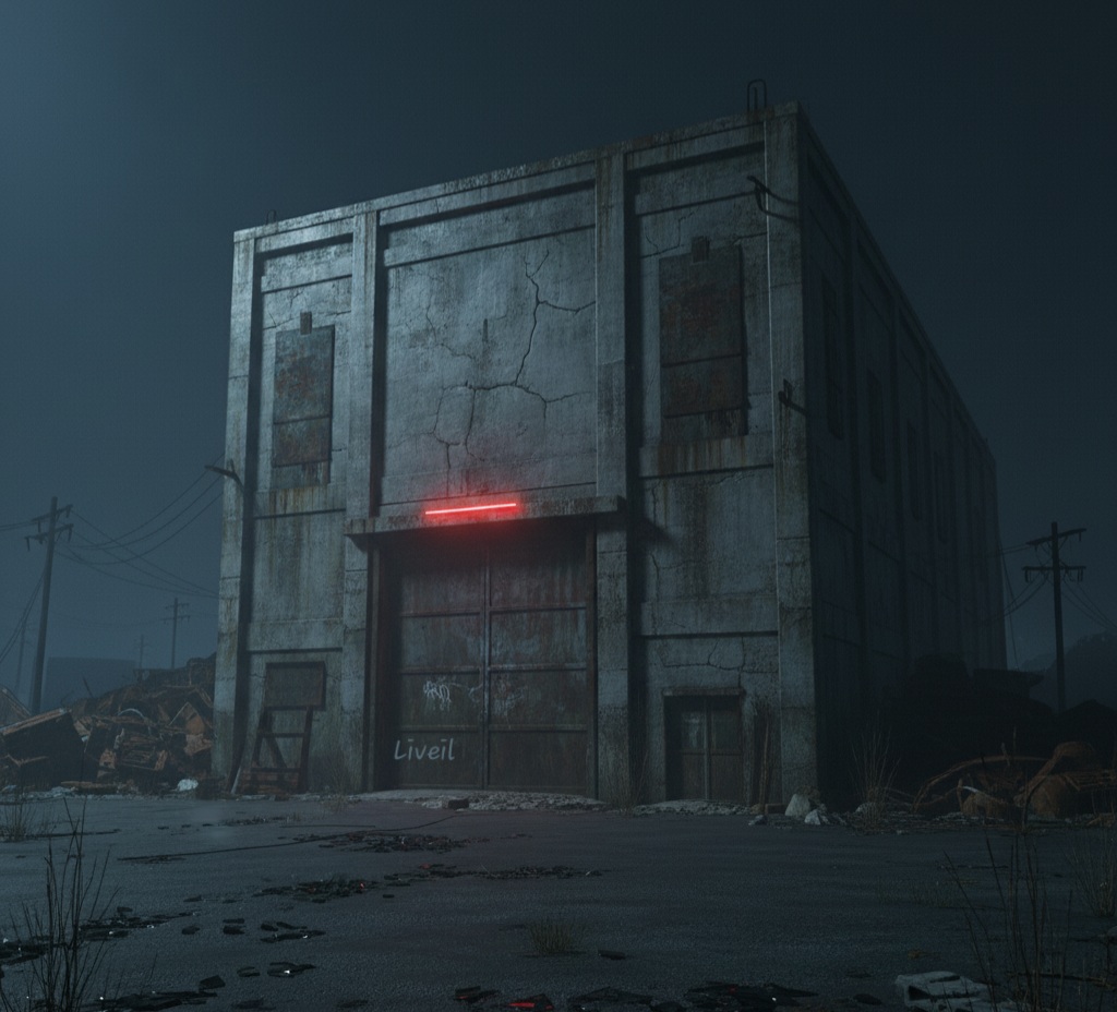 Машина остановилась у старого, почти незаметного здания без окон. Единственным признаком жизни была тусклая красная неоновая полоса над массивной стальной дверью — как след от когтя на теле ночи.