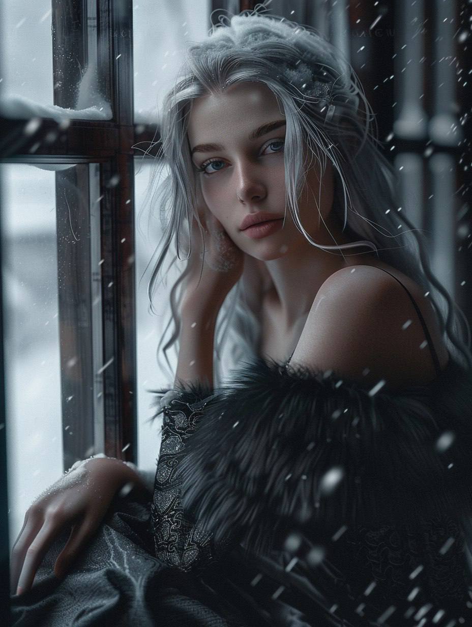 Когда я осталась одна, сняла украшения и распустила белые, почти серебрянные, волосы. У окна было прохладно. Во дворе устанавливали ели, зажигали первые фонари. Снег шёл тихо, ровно, почти красиво — теперь, когда я смотрела на него издалека.
