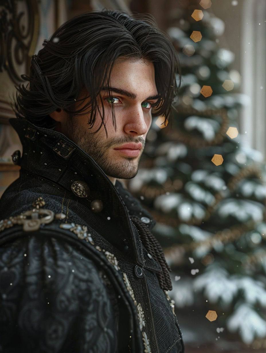 Он не впечатлял эффектностью. В тёмном камзоле без лишней отделки, с выверенной осанкой и спокойными движениями, он выглядел человеком, давно привыкшим решать вопросы без свидетелей. На фоне гирлянд и елей он казался неуместно сдержанным — слишком холодным для зала, где так старались вернуть радость.