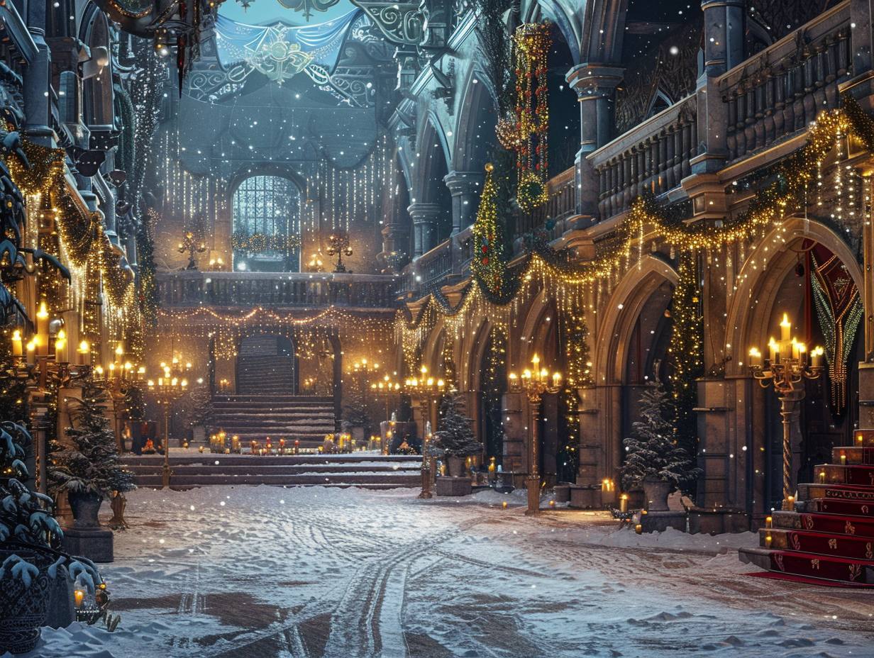 Внутри замка было светло и торжественно, как бывает только в старых родовых резиденциях, привыкших к балам. Высокие колонны с тонкой резьбой, балюстрады, украшенные еловыми гирляндами, тёплое золото светильников, отражающееся в камне пола. Здесь старались создать ощущение праздника, и старались слишком настойчиво, словно Новый год был гостьей капризной и мог обидеться на недостаточное внимание.