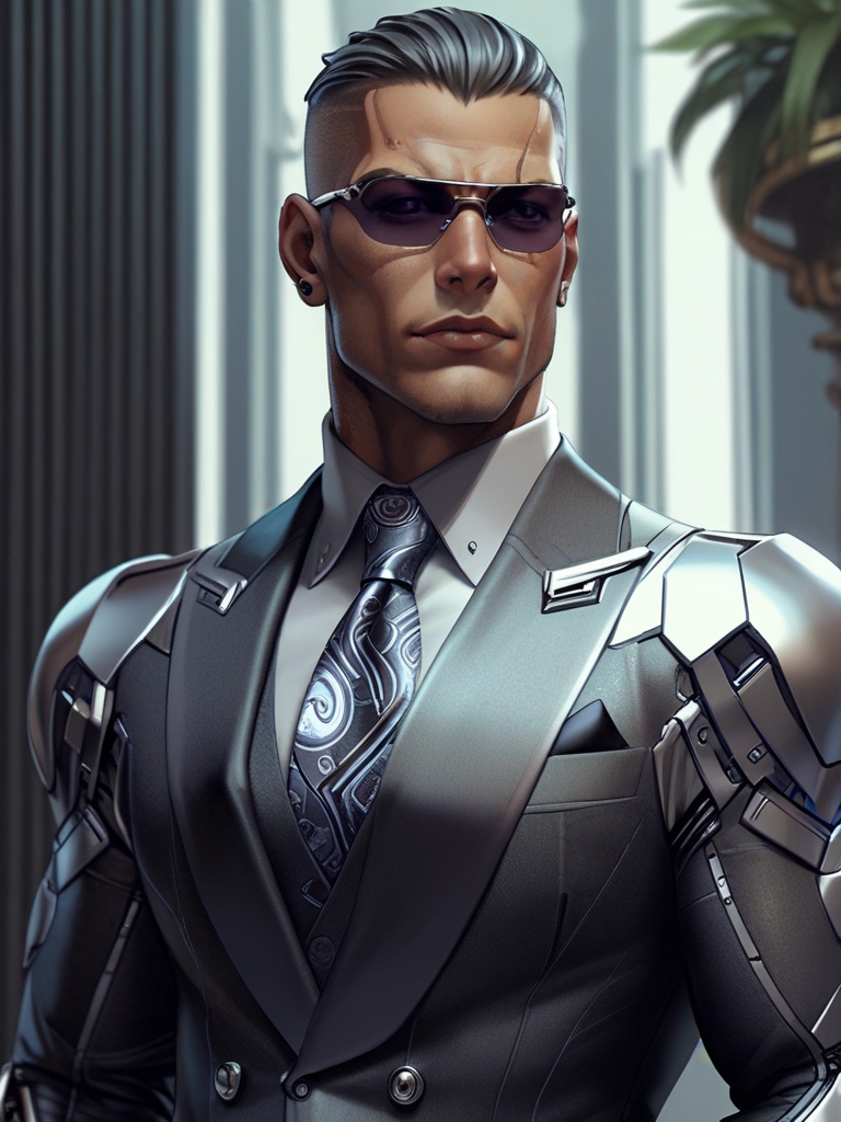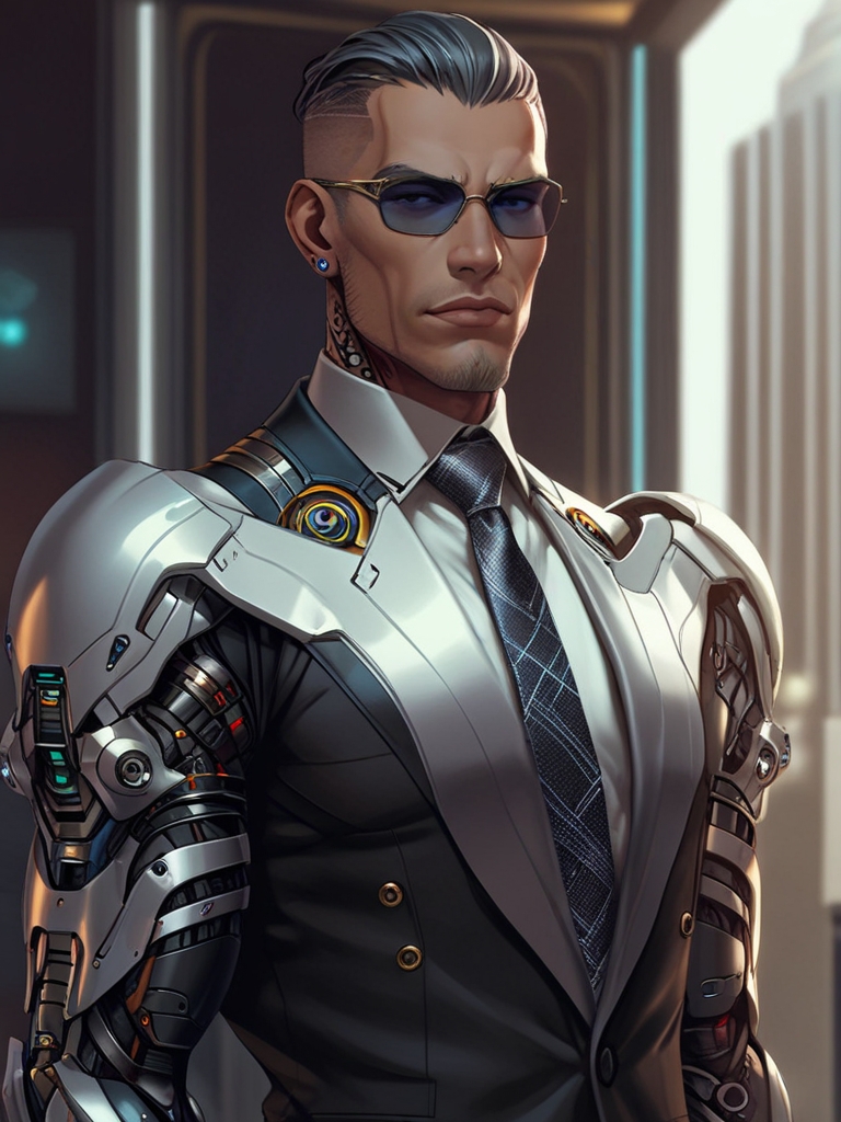 К такому экстренное ночное поглощение информации меня не подготовило. За монументальным рабочим столом, сделавшим бы честь какому-нибудь банкиру 20 века, восседал… робот? Или все-таки человек? Пойми их здесь! Брутального вида чувак с квадратной челюстью и пронзительным взглядом. То есть совершенно нечеловечески пронзительным! Етить-колотить, у него глаза взблескивают и подсвечивают, как светоотражающая пленка! Наверняка в ночи видит, как днем, и спасибо, если туда боевые лазеры не встроены, а только рентген или какая-нибудь суперкомпьютерная нанотомограмма!