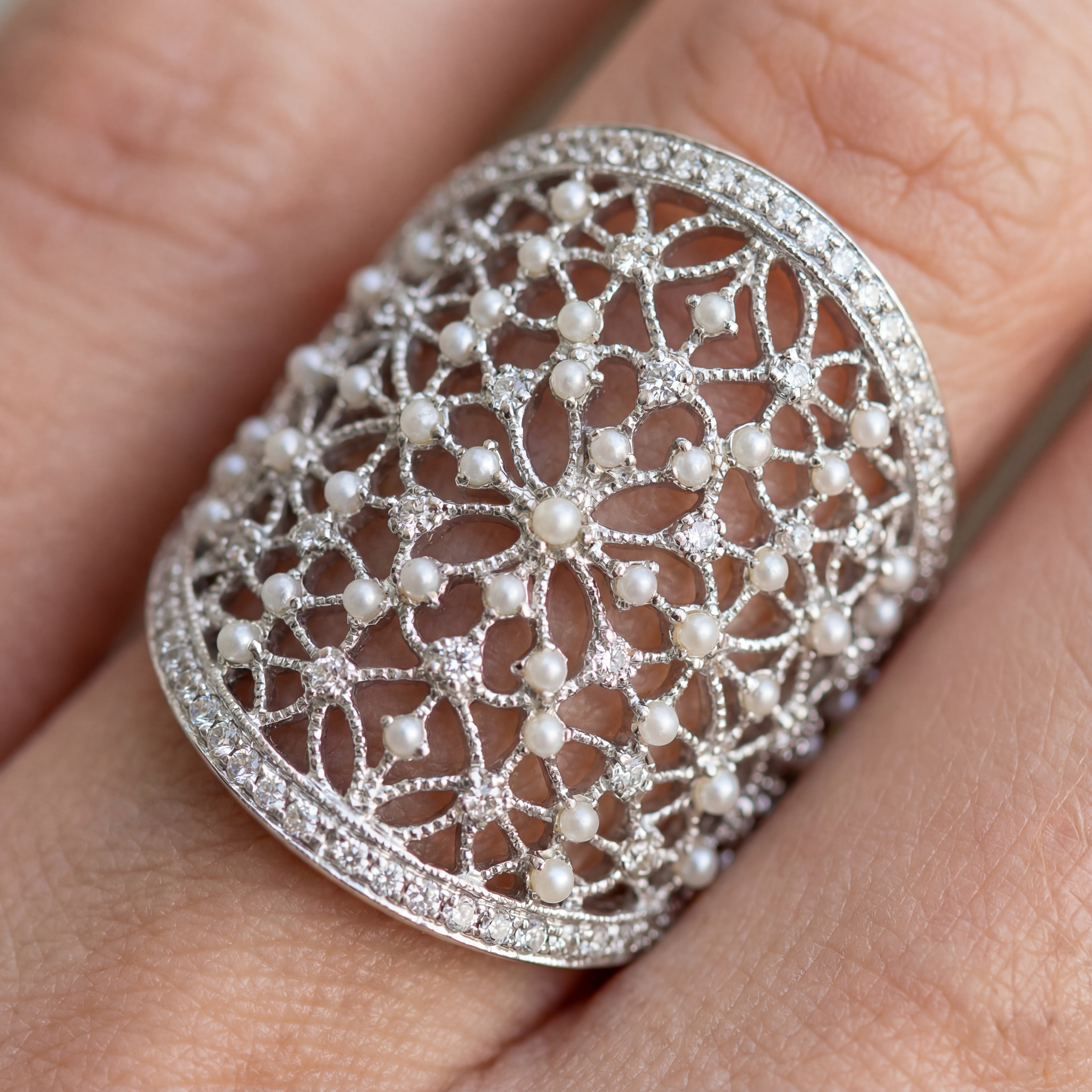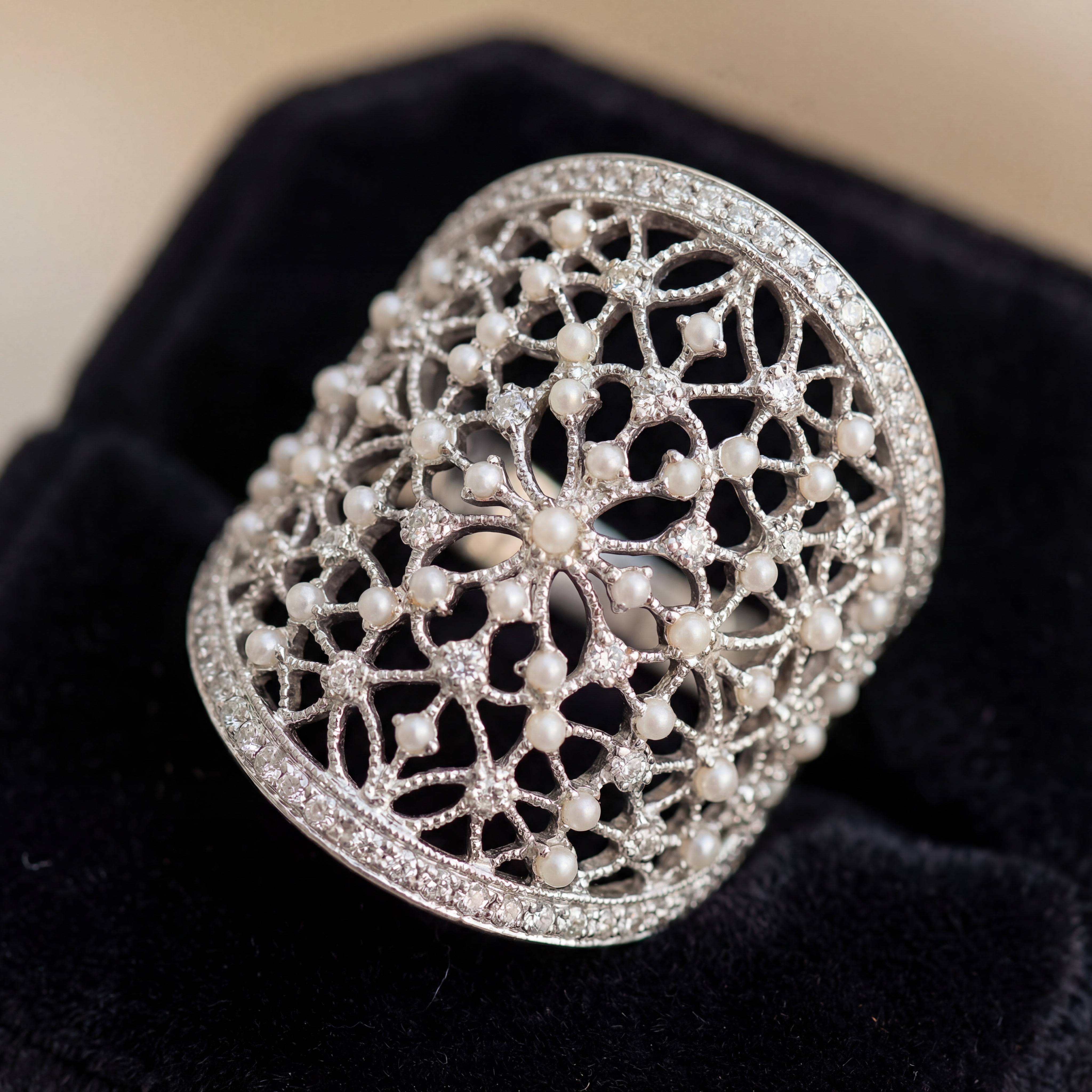 А потом так же внезапно отстранился и вытащил из кармана потрясающей красоты кольцо — нежное, ажурное, притягивающее взгляд не вычурными массивными камнями, а элегантной простотой. Маленькие жемчужинки и бриллиантики рассыпались по сетке белого золота. У меня захватило дух.