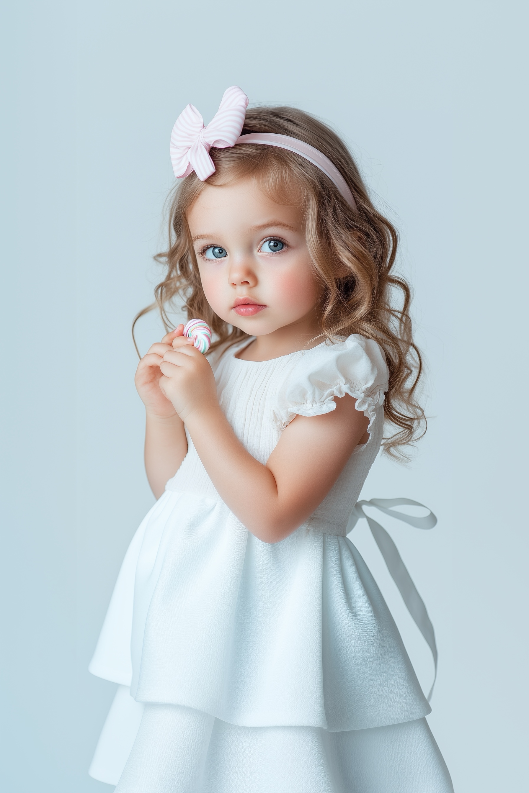 Волосики она не дает собрать, так что пойдет с распущенными.