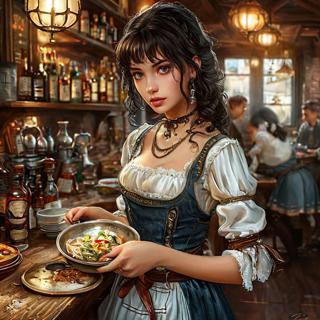Хозяйка, пожилая, почтенная вдова, была человечкой, совершенно не обладавшая магией, с радостью приняла меня на работу, в качестве своей помощницы по хозяйству. Моя предшественница сбежала с каким-то проезжим маркизом, и хозяйка мучилась в таверне, имея в помощниках лишь одного старого, хромого Тома, бывшего солдата. Том, при всем своем добродушие и золотых руках, имел один большущий недостаток, а именно - неуёмную тягу к горячительным напиткам. Вот поэтому госпожа Зарена, или тетушка Зара, как её чаще всего называли, маялась одна, и очень обрадовалась мне.