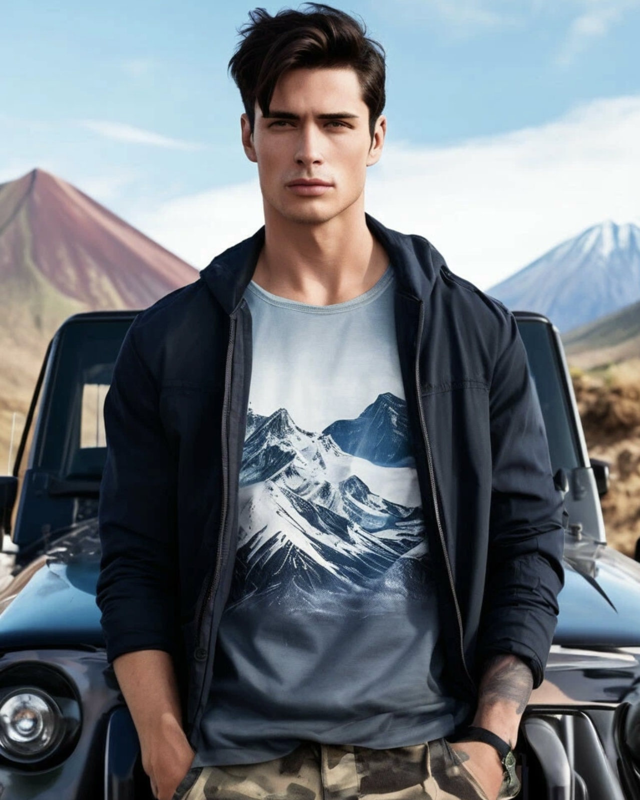 Сразу смекнула, явно где-то поблизости замаячил Тимур. В подтверждении моих слов, горделивой походкой к нам направлялся высокий парень в тёмных очках. Когда он подошёл поближе, уловила приятный мужской парфюм, одет в специальную походную одежду. Яркая футболка с принтом гор, штаны с множеством карманов из плотного материала и тактический ремень на котором, болтался складной ножик и нечто напоминающее газовый баллончик.