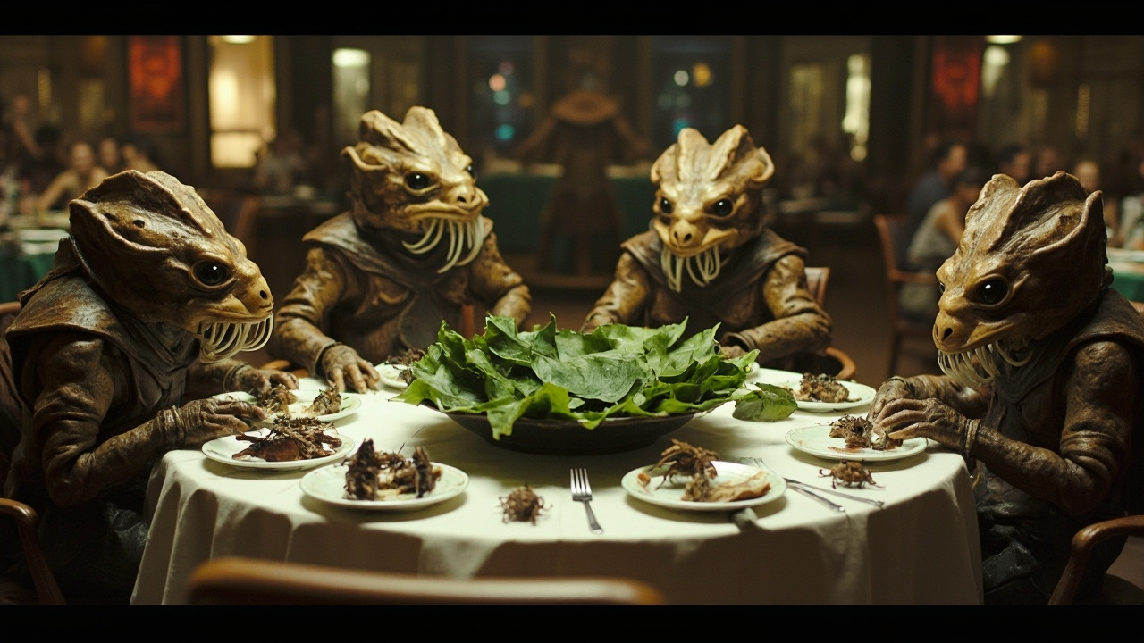 - Да ты ела, словно не в себя! Передними щупальцами запихивая себе в ротовое отверстие всё, что было на столе! Я уж стал опасаться, что и посуду начнешь грызть! Настолько у тебя был безумный взгляд!