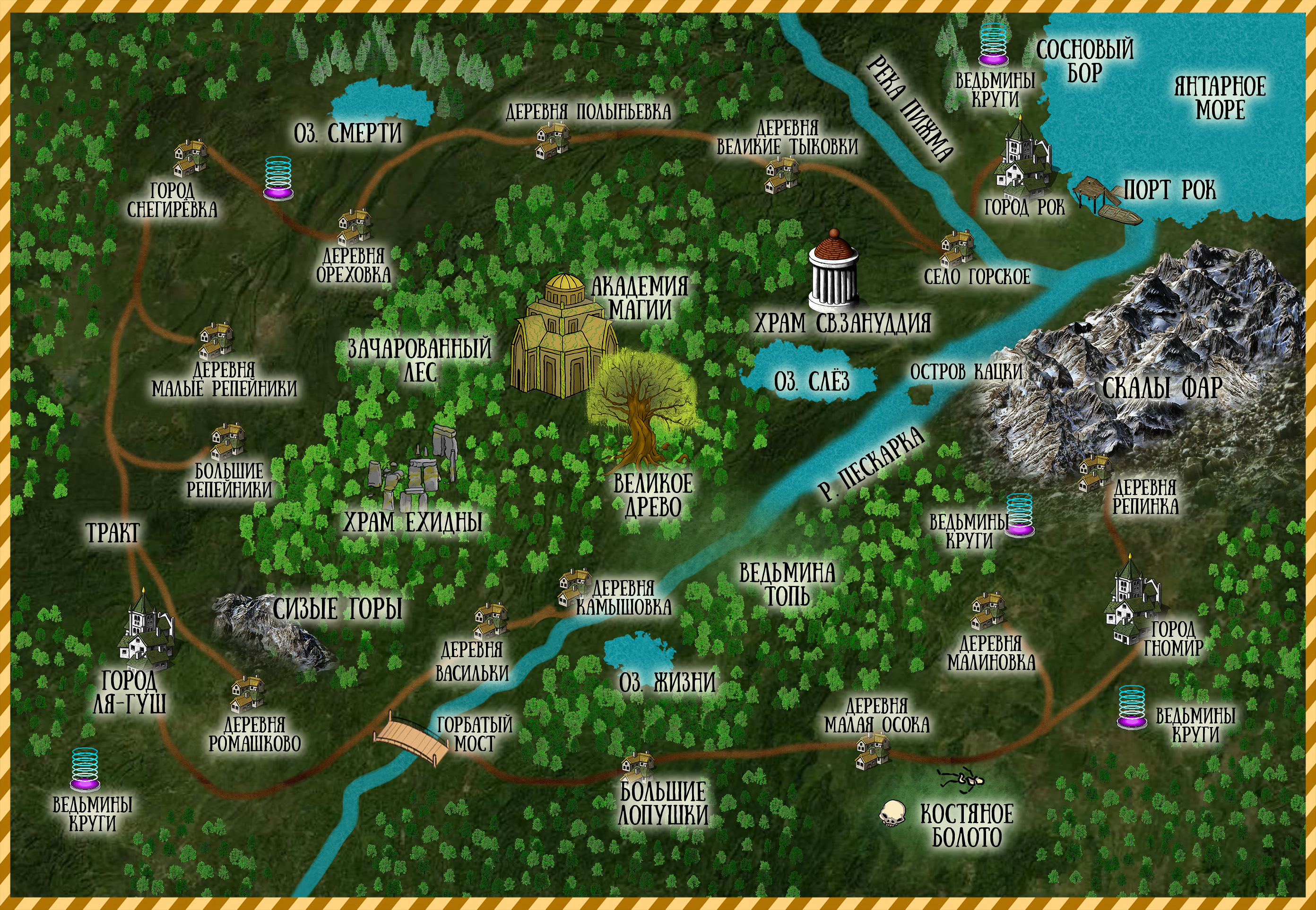 А вот тут у нас карта страны, где живёт ведьмочка Радомила. Найдёте Полыньевку?
