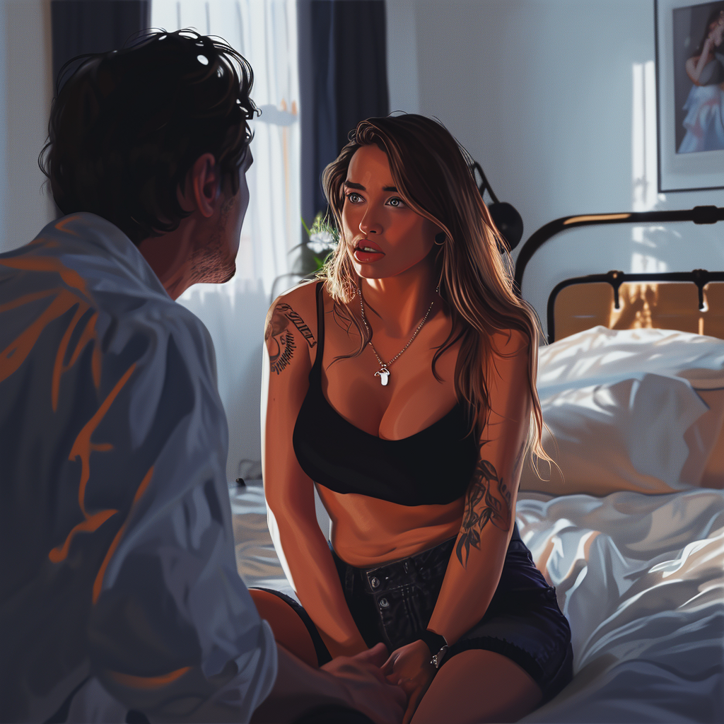 Голая ножка упёрлась в грудь Санни и толкнула его обратно на постель. Блондинка спрятала телефон. Брюнетка сунула в морду знакомый листок.