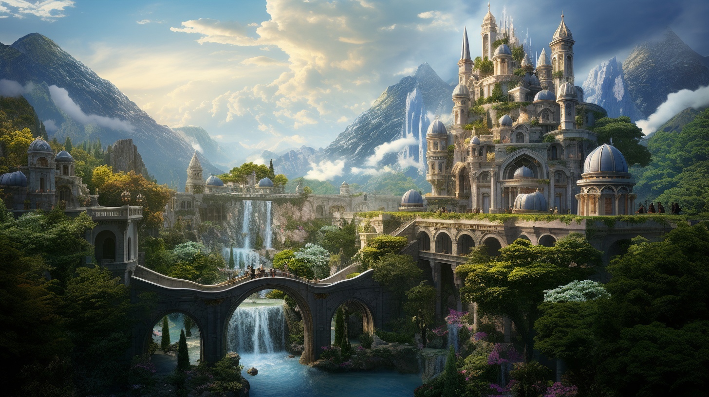 Внутри скалы я увидела огромное белоснежное пространство. Каменная чаша была частично заполнена розовой водой, на поверхности которой плавали белые и жёлтые кувшинки на гигантских зелёных листах. Казалось, можно на них присесть, опустив ноги в воду, а они выдержат. Но самым потрясающим воображение был дворец из белого мрамора. Частично впаянный в скалу, он нависал над водой, к которой вела широкая белоснежная лестница, увитая цветущей зеленью.
