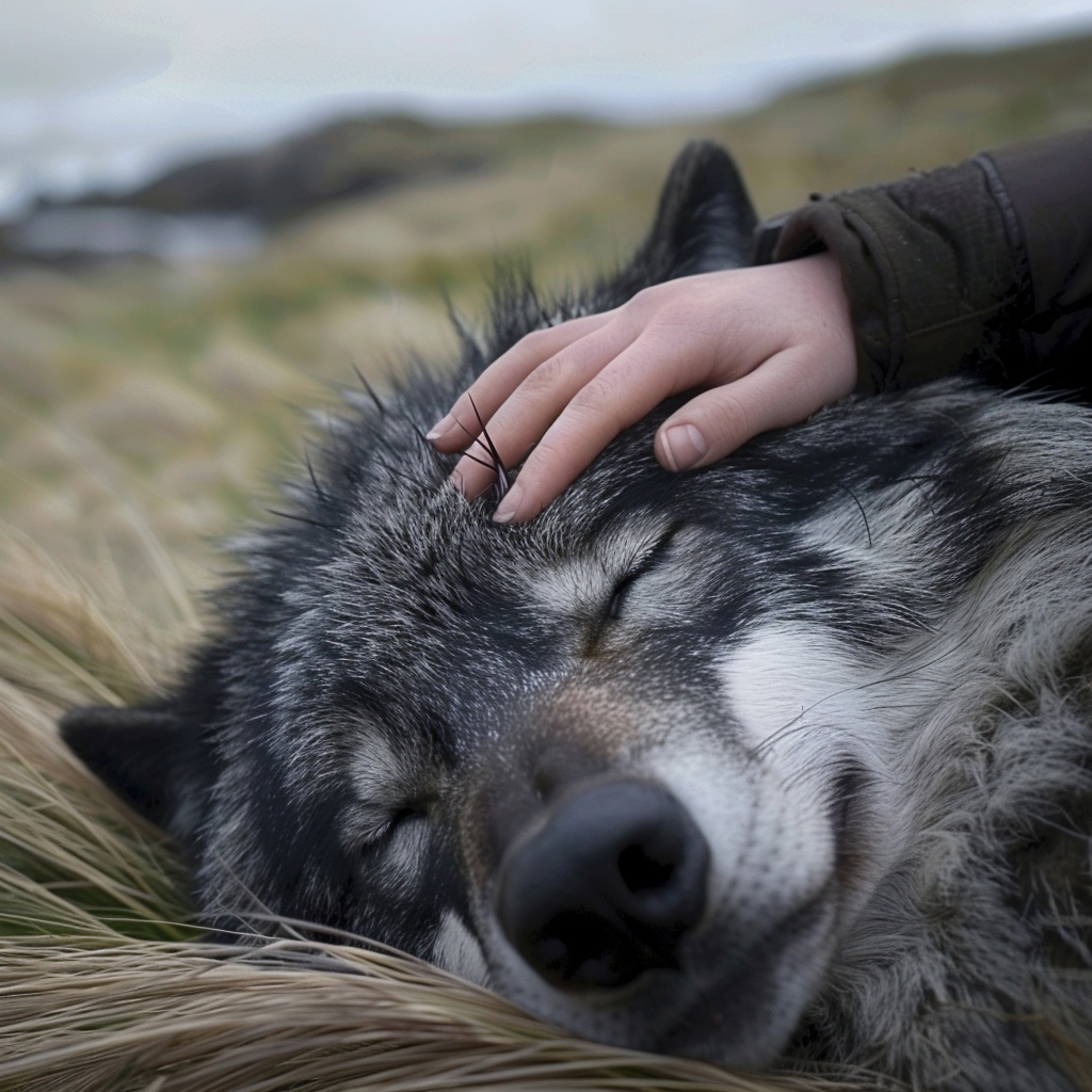 Кости заныли, трансформируясь в свою истинную форму, толстые крепкие лапы почувствовали холодный влажный песок, мускулистое тело сложилось в гибкое, горячее туловище, кожу покрыла густая черно-серая шерсть.