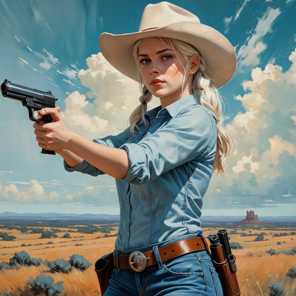 Я резко обернулся. Перед глазами возник образ какой-то мелкой девчонки с красными от интенсивной ходьбы щеками и с двумя абсолютно белыми косичками на плечах. Она была одета в клетчатую рубашку, джинсы и ковбойскую шляпу… а в руках держала ружье… и уже целилась. Вот черт!