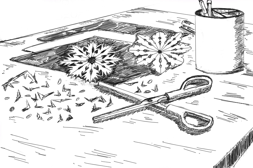 - Еще один нюанс и будем кушать. Вот эти снежинки к потолку приклеим. Будет казаться, что снег идет.