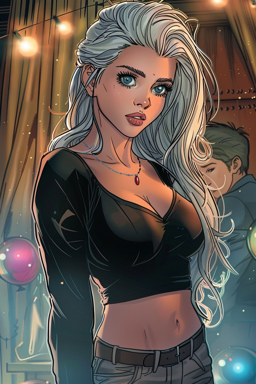 Перекинувшись парой фраз ещё с несколькими знакомыми, я подошла к папе. Вера сидела за столиком. Выглядела она, как дама, которая пришла в консерваторию, а не в клуб, ей богу. Ей только монокля не хватало. Волосы уложены вверх, длинный шёлковый стильный комбинезон и чёрный пиджак в тон. И как ей удавалось под такие ритмы и басы сидеть с ровной спиной, сцепив руки замком на колене? Даже папа пальцами отстукивал ритм по перилам.