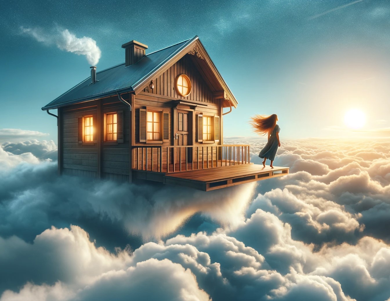 Распахнув дверь шире, перешагнула через порог, поставила ногу на дощатый пол, надавила. Ничего не скрипнуло. Но выйти полностью из дома я не решилась. Прислонилась плечом о косяк и заворожённо глядела на белоснежное, словно сахарная вата, море вокруг, на бездонное небо впереди и сверху. Такое я видела только в иллюминатор самолёта, а сейчас не просто видела, но и ощущала, как воздушные потоки овевают всю меня. Разве такое возможно? Знаю, что в случае разгерметизации на подобной высоте человек теряет сознание в среднем за тридцать секунд. А у нас не просто окна разбиты, так я ещё и в дверь выглянула. И всё без вреда здоровью.