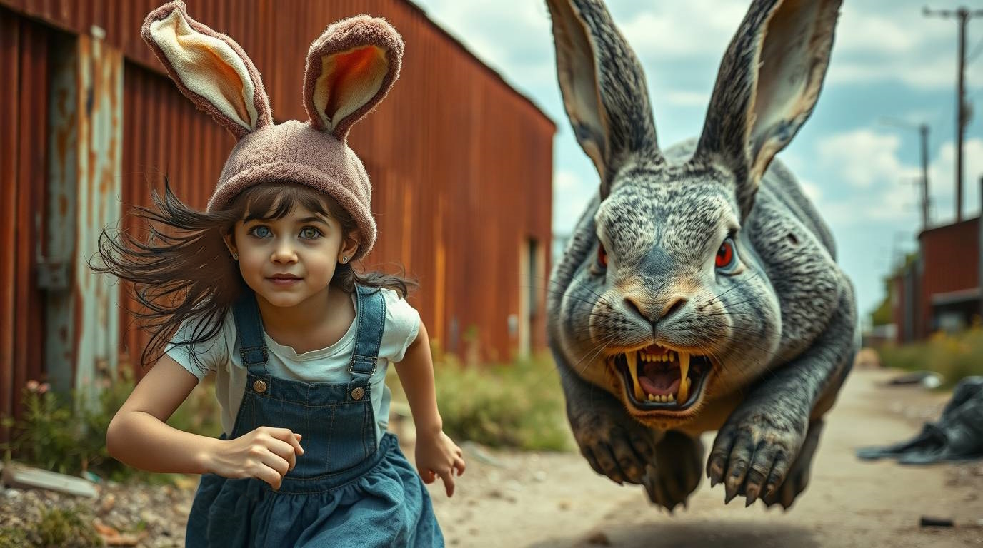 В ответ испуганное существо только глубже забилось в руины. Тогда малышка потёрла морковь о потрёпанную одежду, откусила кончик и стала нарочито громко хрустеть угощением. Машина перестала вздрагивать, послышалось сопение – Роро стал принюхиваться. Малышка снова выставила надкушенный овощ в проём, и, наконец, из машины показалась морда громадного кролика. Зверь запросто мог перекусить девочку пополам, но она продолжала бесстрашно выманивать его наружу. Ведь это была Мика. Лишь она могла справиться с огромным, но пугливым, как и обычные собратья, кроликом Роро. Других ребят из посёлка он опасался, а незнакомцев так и вовсе панически боялся.