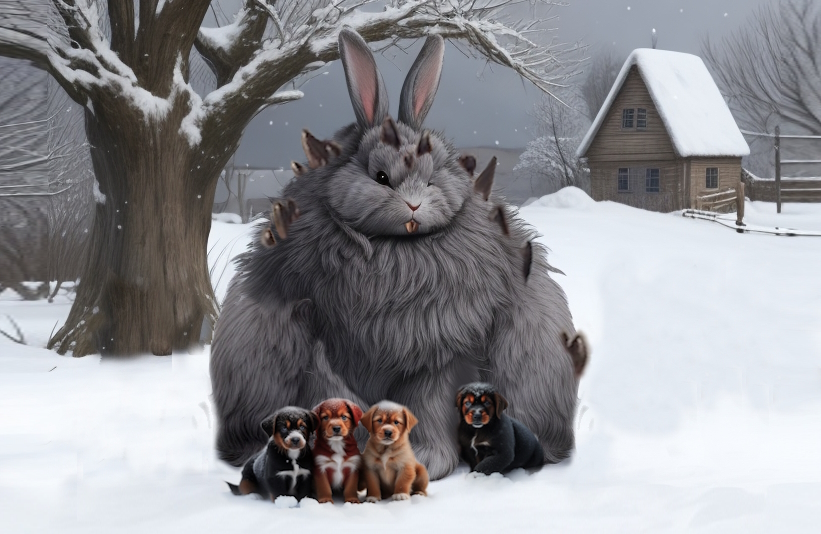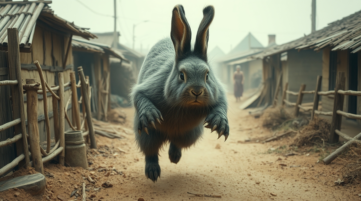 В целом посёлок показался семьсот сорок восьмому даже уютным: «Кажется я начинаю понимать, что нашёл в них Тренер». Поймав себя на этой мысли, цитаделец тряхнул головой и стал искать взглядом девушку, которая должна была проводить его за дровами. Вместо этого он заметил, что к нему приближается нечто огромное и пугающее. Клочковатая серая шерсть, из которой торчали зазубренные чешуи, топорщилась на спине зверя, который высотой в холке был юноше по плечо. Красные глаза и длинные жёлтые передние зубы выдавали в звере кролика.