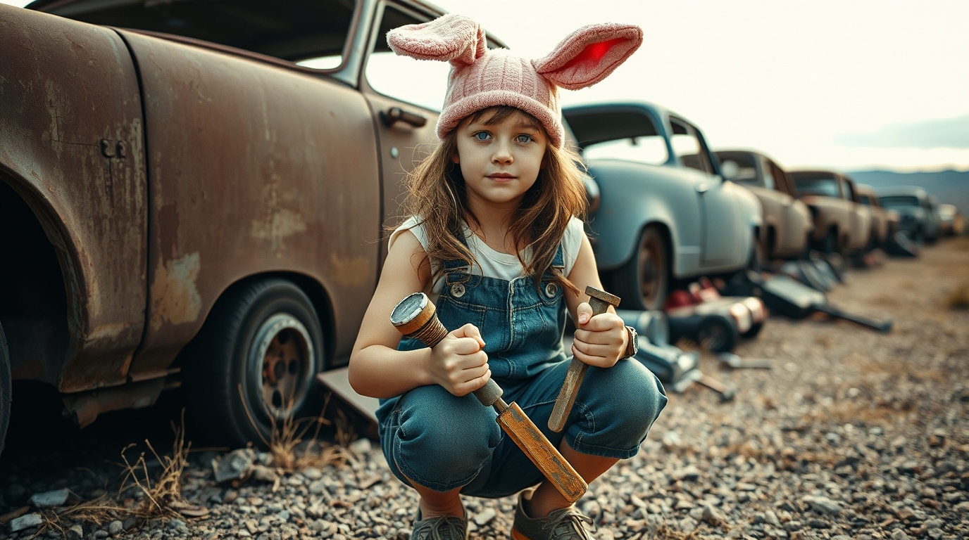 – Роро, не бойся, выходи. Тебя никто не обидит, – маленькая девочка в смешной шапке с длинными ушками осторожно приближалась к проржавевшему автомобилю.