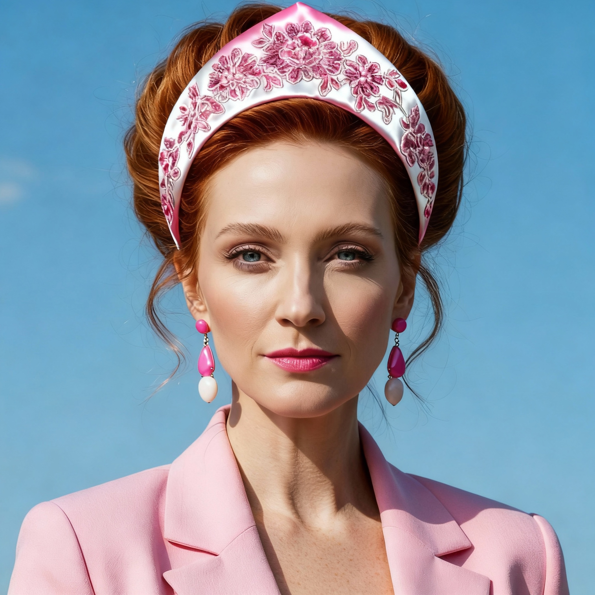Лет сорока, очень ухоженная, в костюме приятного розового цвета. Красный современный ободок-кокошник в тон костюму на огненно-рыжей шевелюре портил серьезный образ, который она приняла, стоило нам оказаться в кабинете.