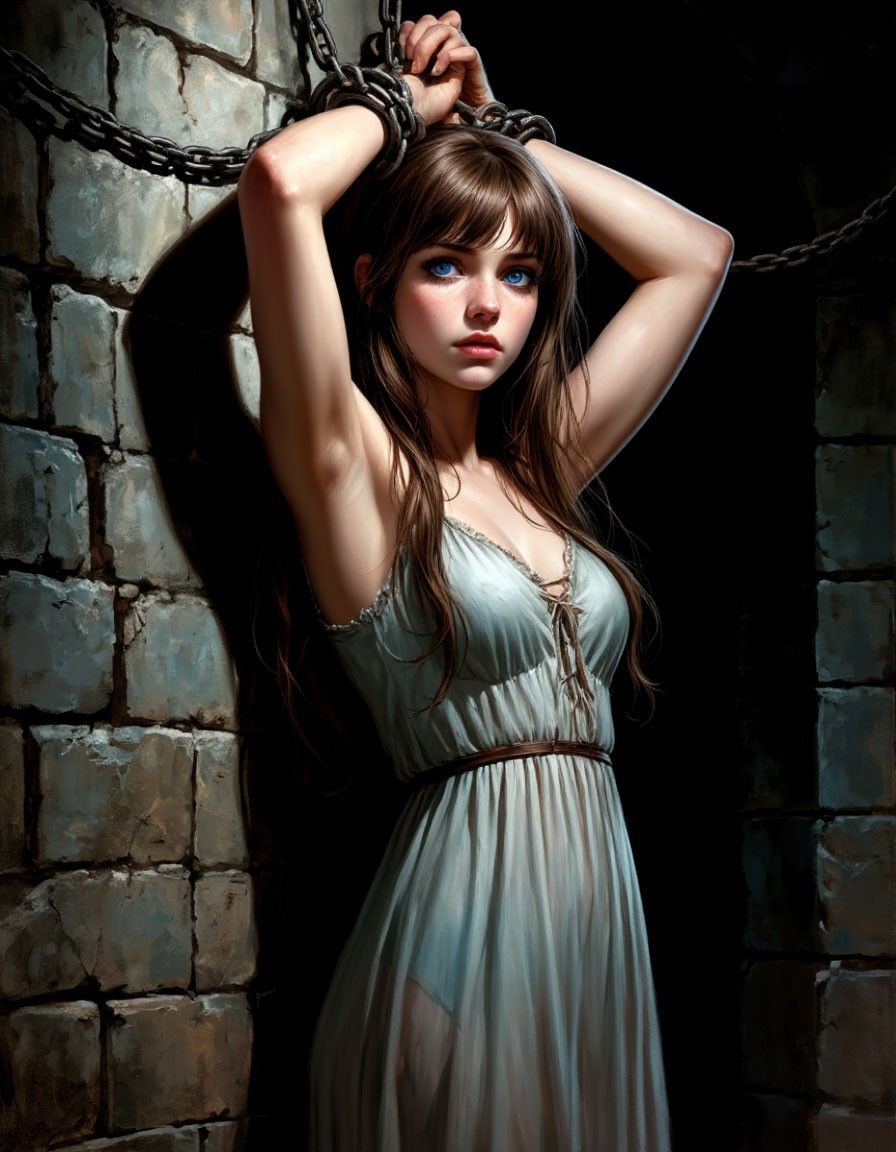 Запястья зафиксированы наручниками, не оставляя и шанса на сопротивление.
