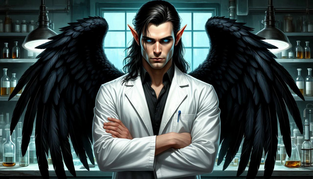 Тот стоял в грязной одежде, словно катался в ней по земле. Волосы спутаны, на крыльях не хватает несколько перьев.