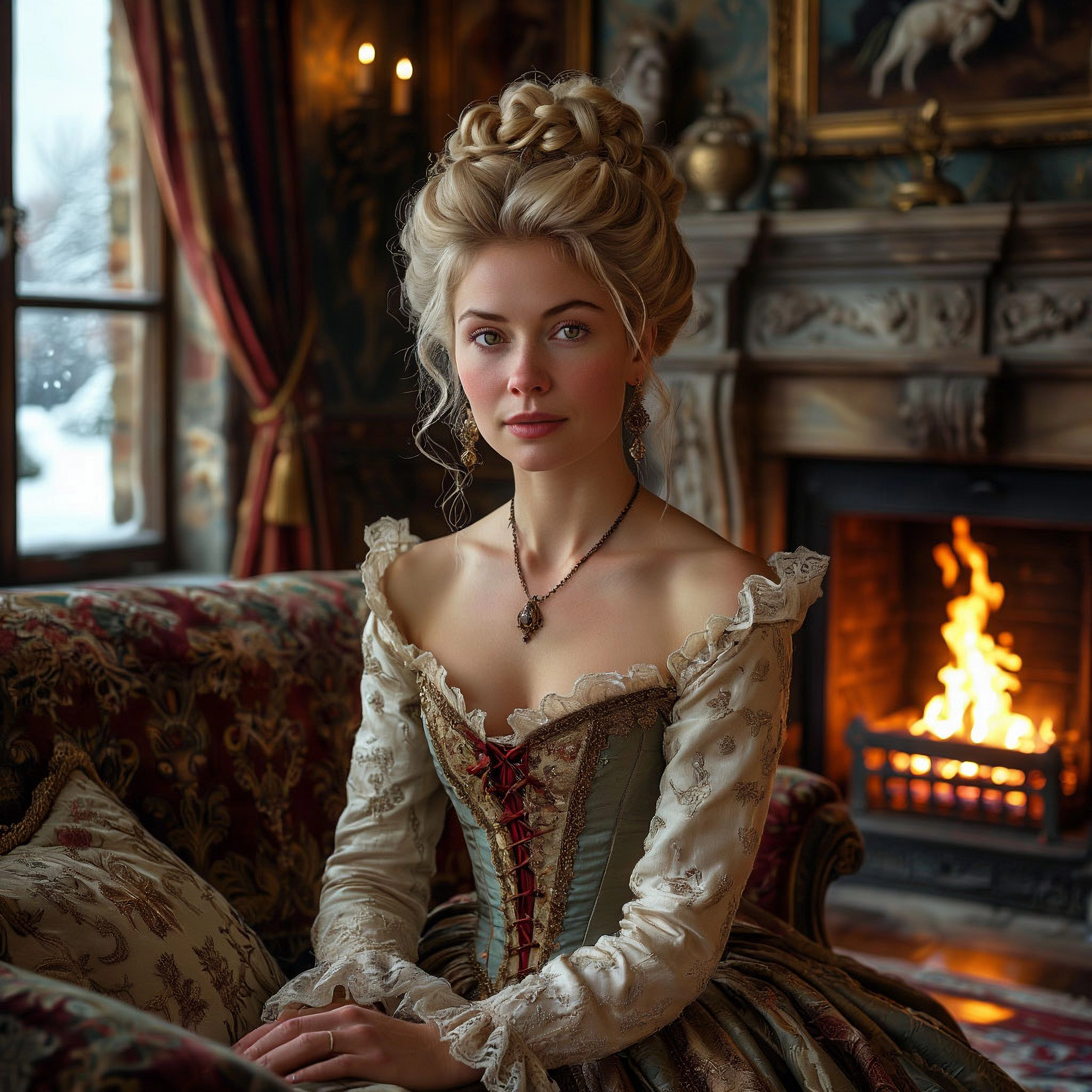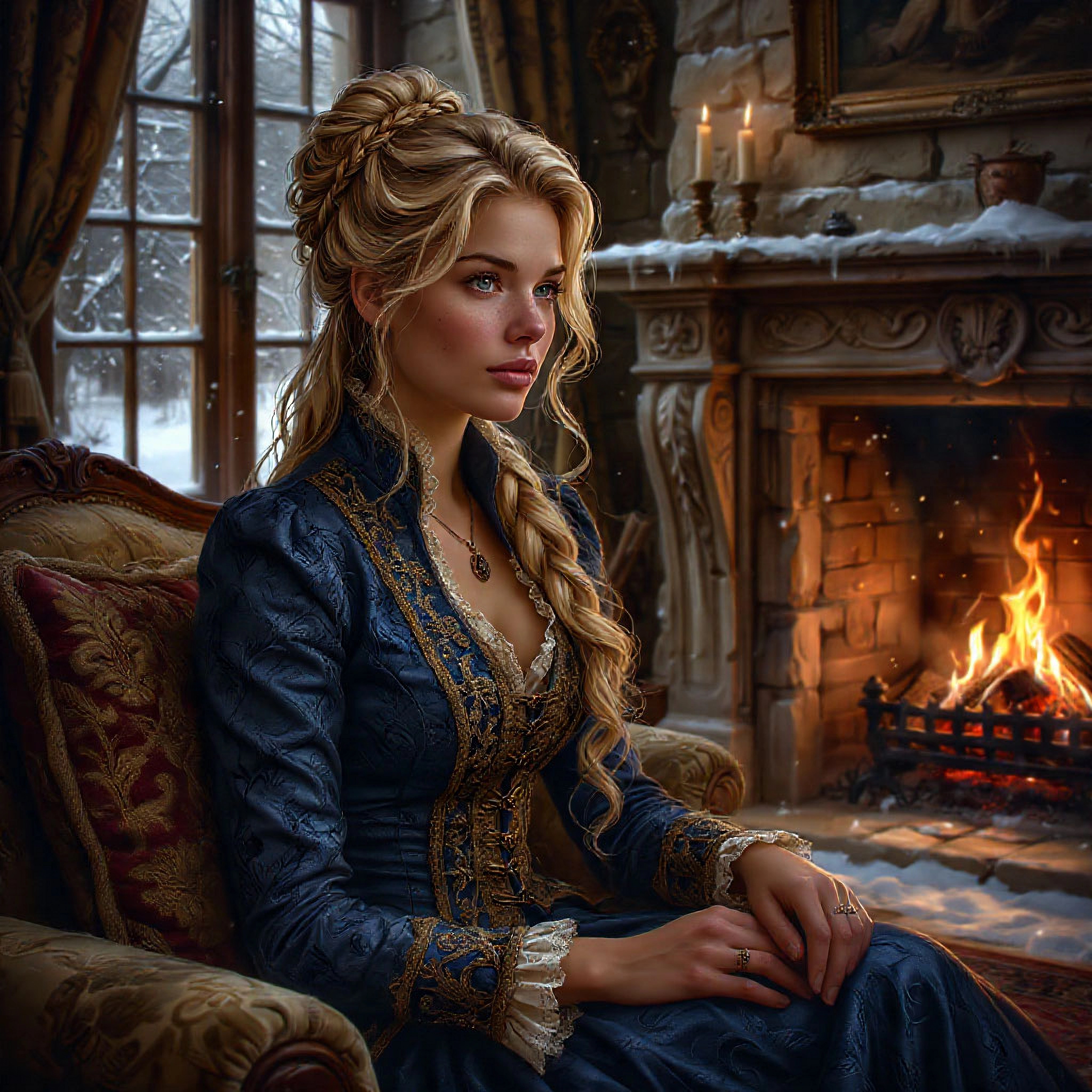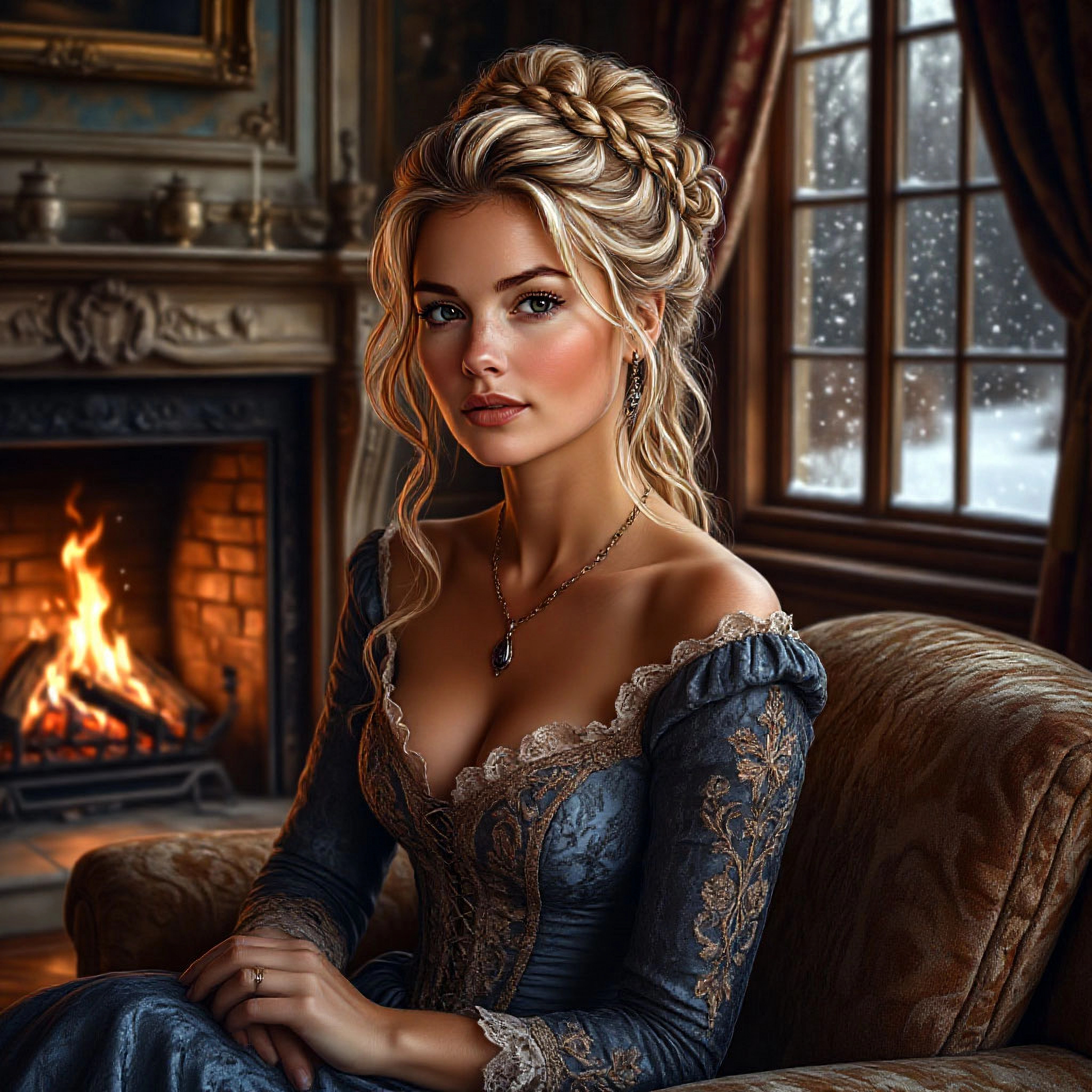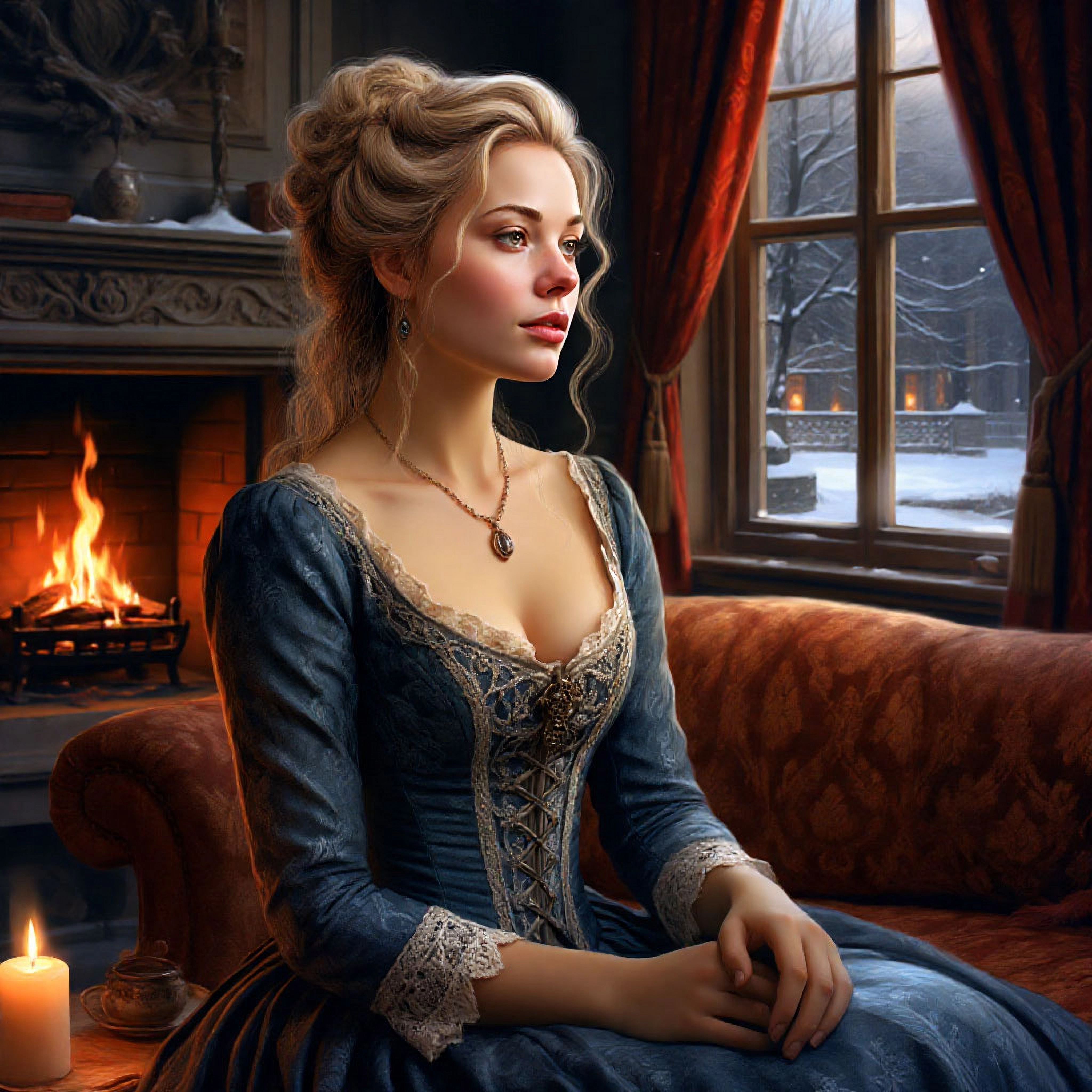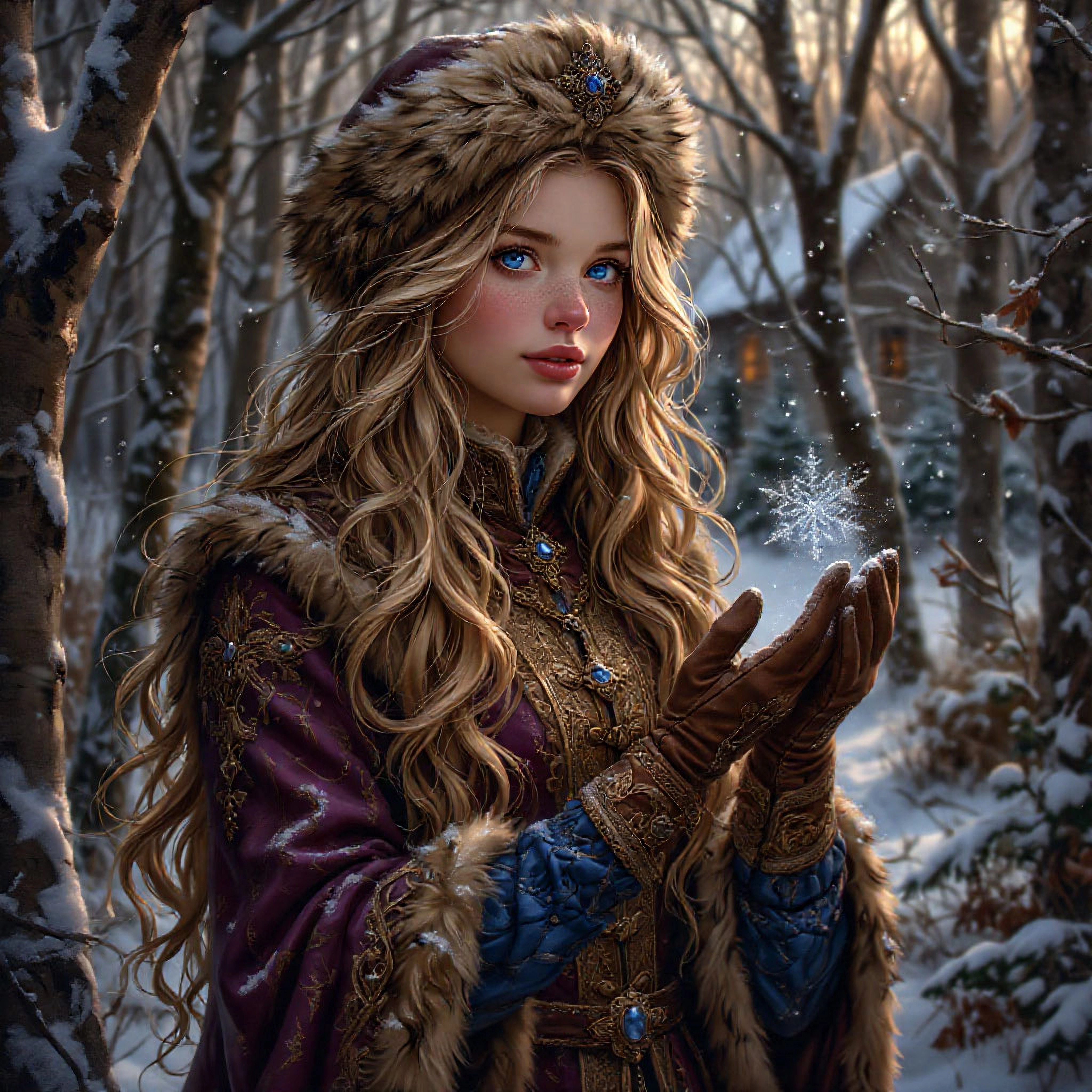 Вокруг было белым-бело. Вместо очищенных дорожек лишь натоптанные узкие тропки. Сугробы уже доставали до колен, а снег, не останавливаясь, всё валил большими хлопьями. И я в простом домашнем платье. Спасибо хоть в шерстяном, а не шелковом. Не раздумывая больше ни секунды, припустила к лачуге.