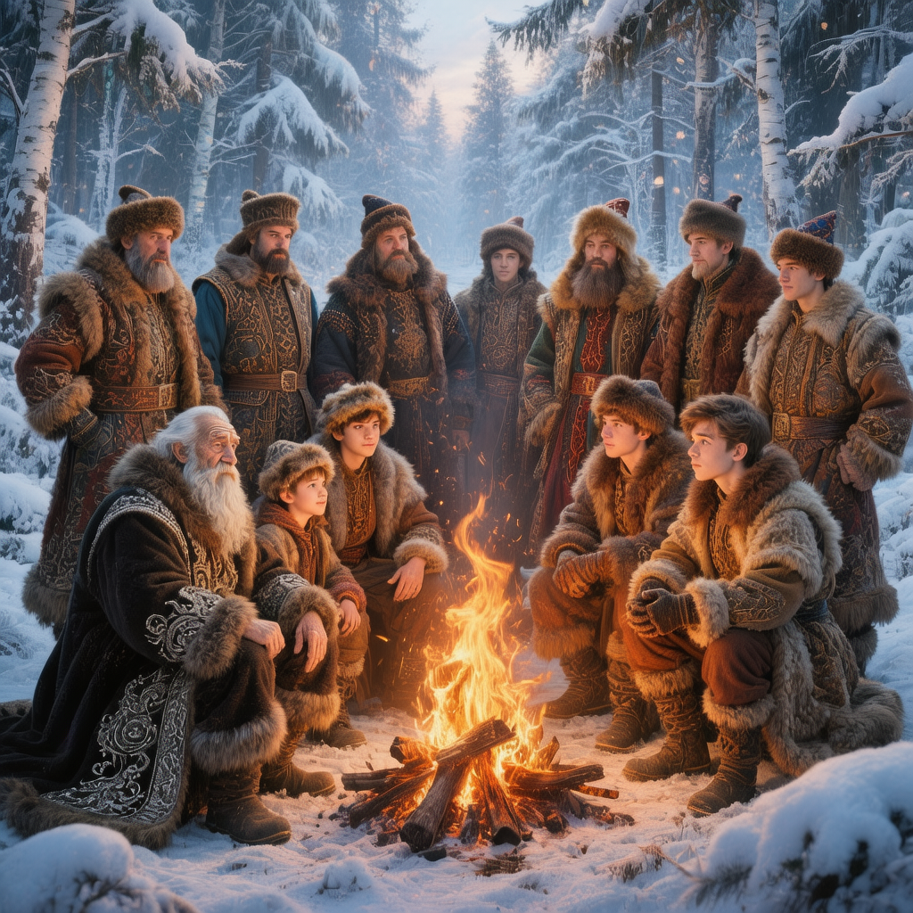 — Иди к огню, не бойся, — позвал тот, что первым со мной заговорил, в синей длинной шубе с белым мехом, в тон ей меховой шапке и с длинной седой бородой.