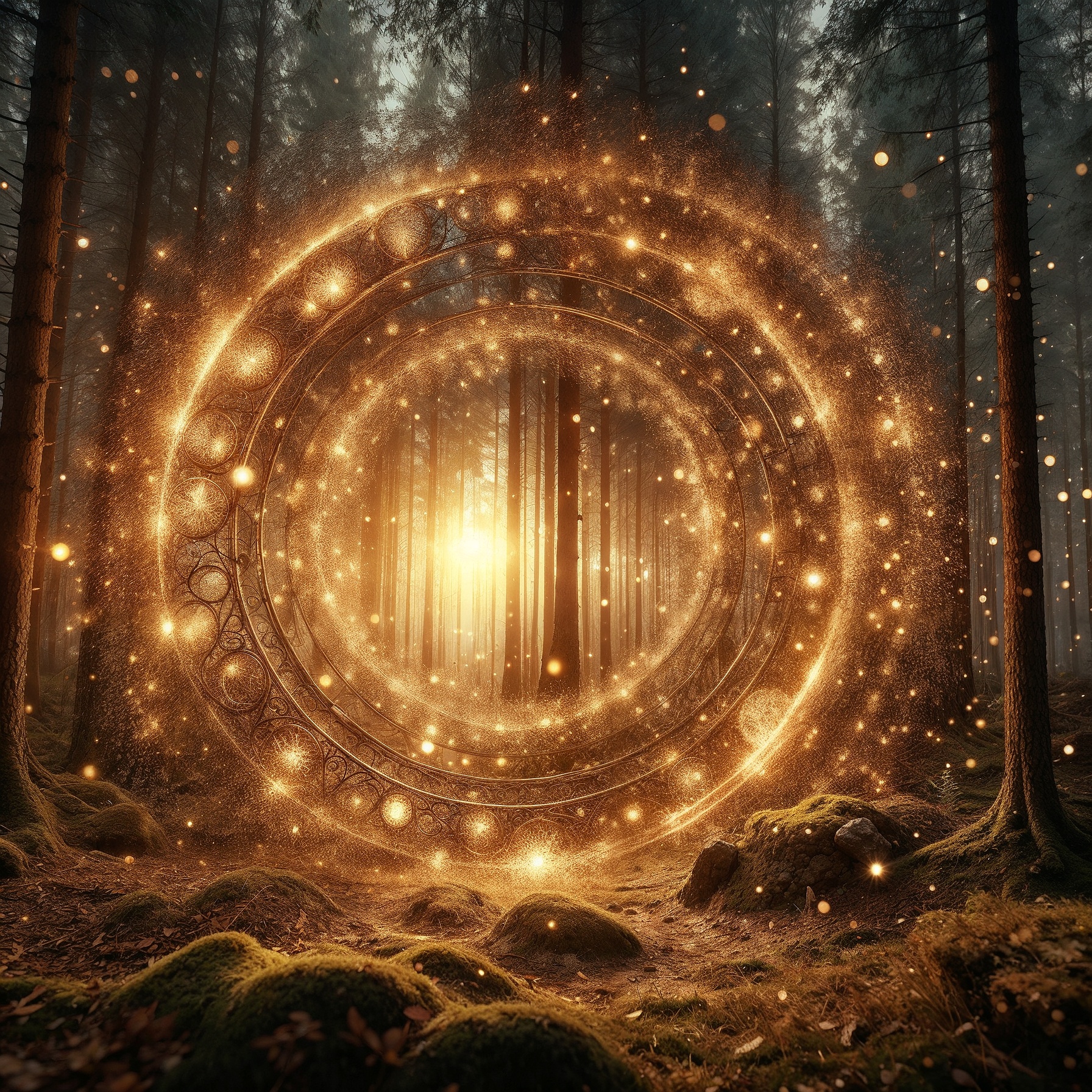 Я остановилась и, переключившись на магическое зрение, тоже стала осматриваться. Напарник прав — несвойственные этому миру энергетические потоки пронизывали всё пространство вокруг, мерцающие серебром силовые линии переплетались, витали в воздухе искры мощного заклинания. В этом месте вершилась высшая магия!