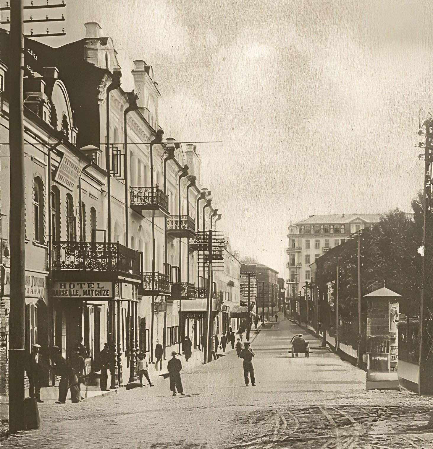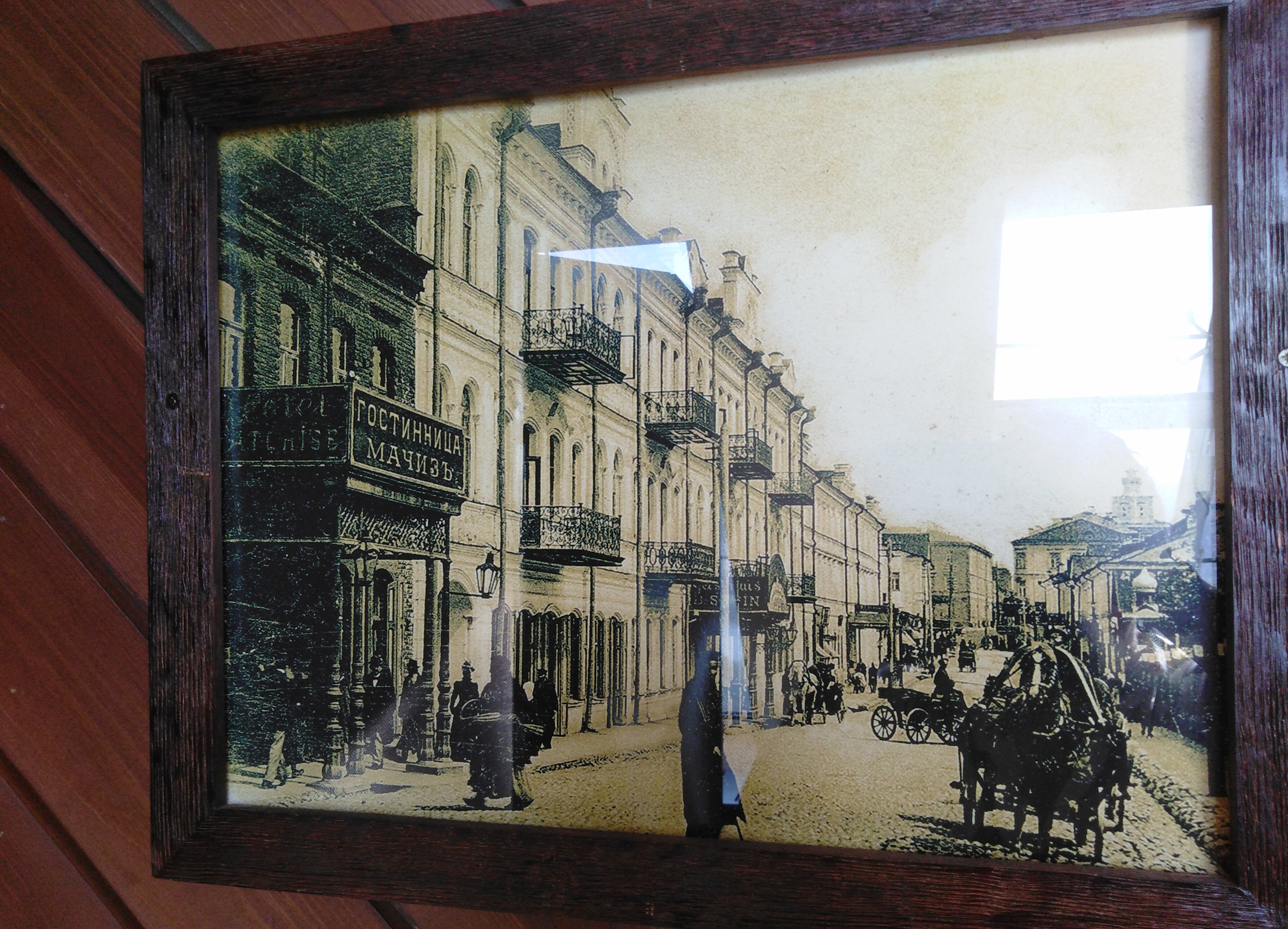 – Я же была там сегодня, только не обратила внимание на этот дом. Одна улица ведет к Верхнему городу, другая – уютный бульвар. А что на современной фотографии? Ого! Соседнее здание с балкончиками сохранилось почти без изменений, даже кованые решетки целы. А вот гостинице не повезло. Кирпичи заштукатурили, а от оригинального крыльца и центрального балкона вообще ничего не осталось. Очень жаль! Нужно будет сходить туда еще раз. «Мачиз»… Интересно, что означает это название?