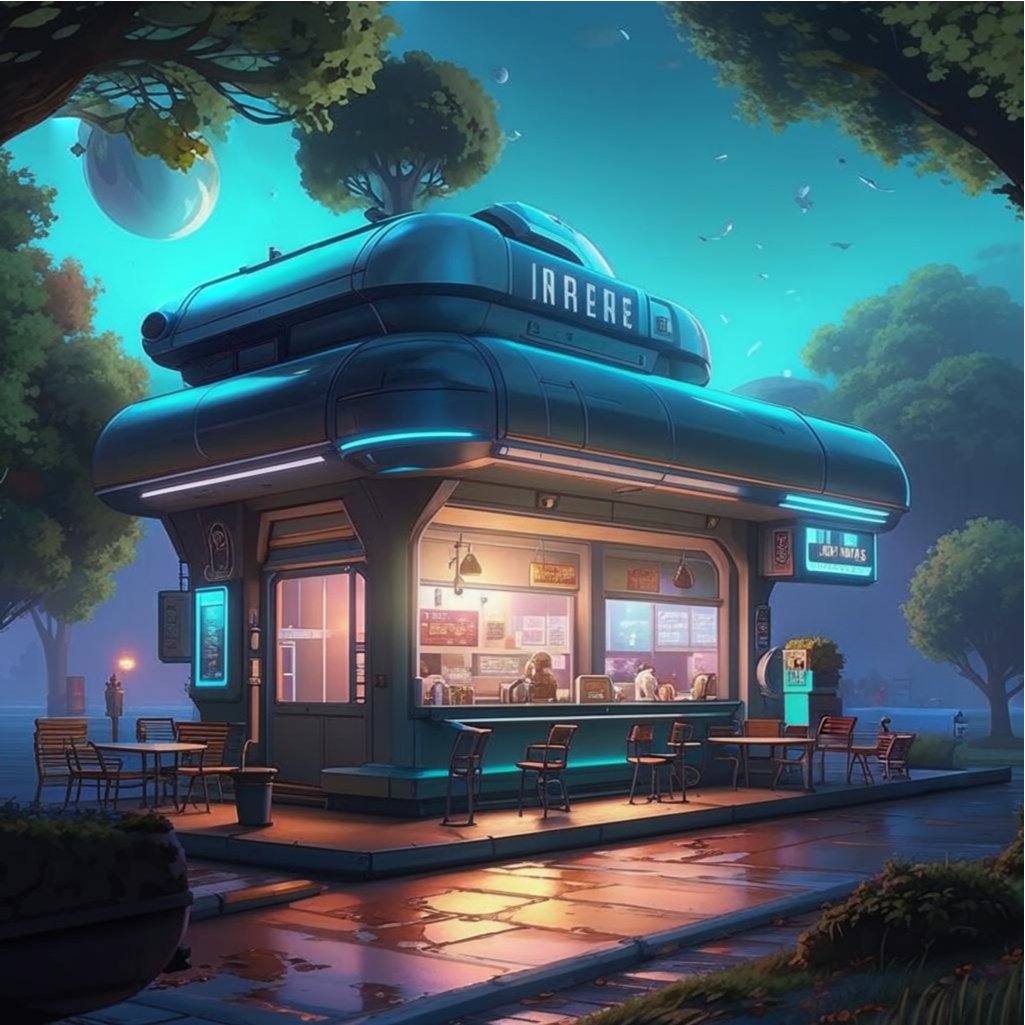 Кафе-мороженное около водно-светового парка.