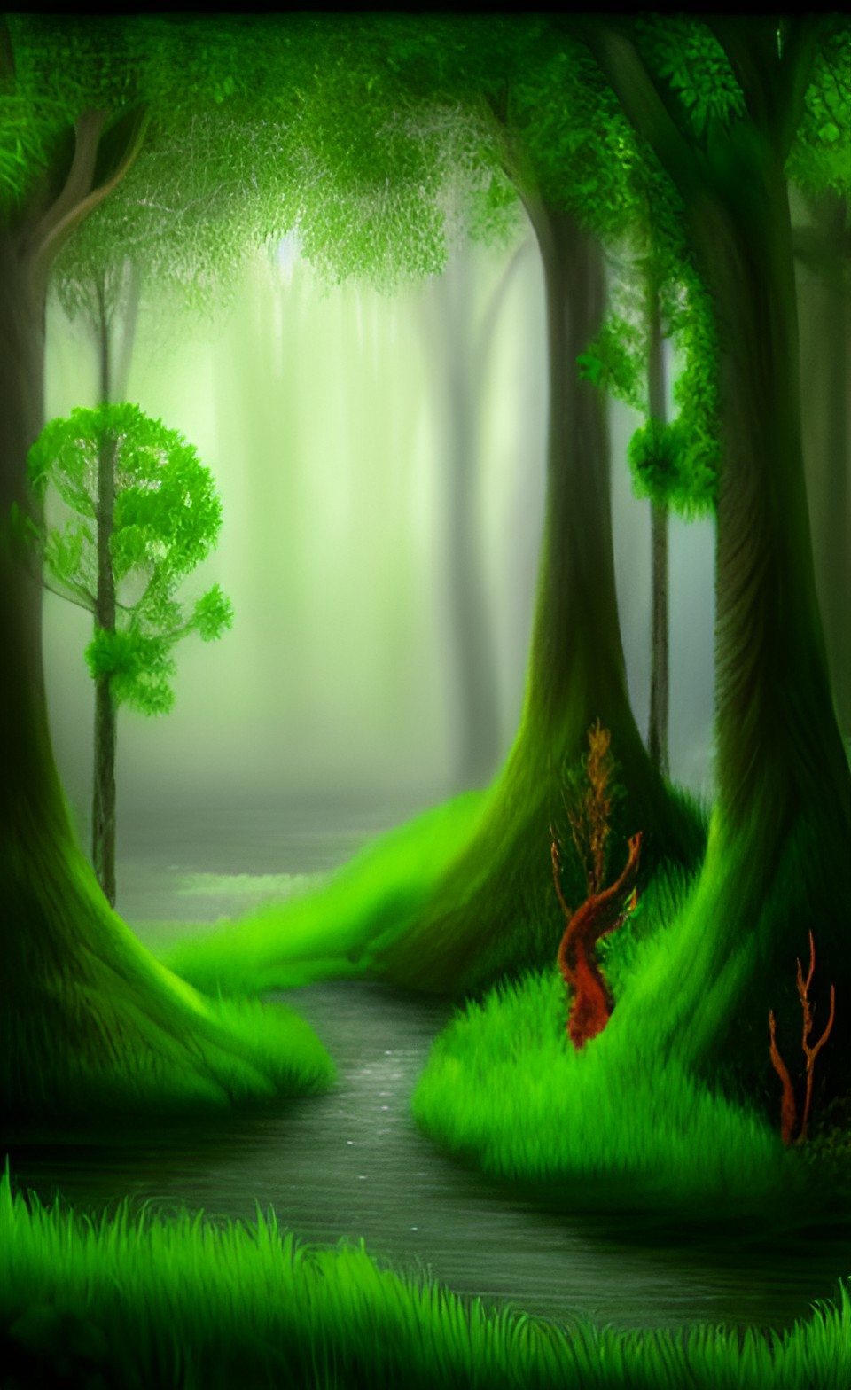Деревья, что находились здесь, выглядели очень необычно и ярко. Было ощущение, что они могут опустить свои ветви для того, чтобы просто поздороваться с тобой или даже погладить по голове, указывая на твою доброту и сообразительность. С некоторых из них спускались длинные коричневые лианы. Орби дотрагивалась до них рукой, ощущая всю мягкость и бархатность их покрытия. Если вдохнуть аромат, исходящий от них, то можно почувствовать запах кокосовой стружки, молочного шоколада и орехов. Она спросила разрешения у высоких зелено-оранжевых деревьев и они согласились отдать ей небольшой кусочек лианы. Лёгкий поклон, улыбка и объятие в знак благодарности достались дарующему древу, после чего довольная Орби устроилась у его корней и принялась за трапезу. Плес тоже попробовал это лакомство, и ему оно очень приглянулось. Казалось, что он тоже тут когда-то жил в теле человека и пробовал здешние яства.