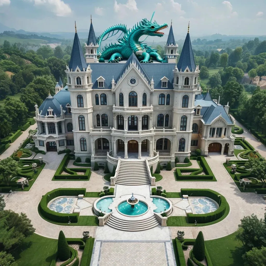 Размышлять дальше уже некуда, так как мы подошли к замку... И тут я чуть не присвистнула... Нет, такой я видела уже. Всё до боли знакомо. Вот ступени, сделанные из мрамора. Вот двери, необычно высокие и широкие. Да тут пройдёт дракон! Здоровенный, сапфировый дракон!!! Тот, что снился мне однажды. Но не это удивительно, а то, что всё вокруг теперь кажется нереальным! Здоровенный замок, три этажа, винный погреб и потайные ходы мне известны! Я могу прям сейчас найти покои того дракона! Невероятно! А ведь на верху ещё есть площадка, окуда можно взлететь тому ящеру. И с высоты птичьего полёта, я точно видела округу... Замок находится в горах, вокруг него забор резной, со шпилями на концах. Есть удивительный сад, в его центре , стоит фантан. В фонтане статуя, на котором изображён дракон, с девушкой на его спине. Такие же статуэтки по всему дворцу. Даже картина в кабинете весит... Странно...