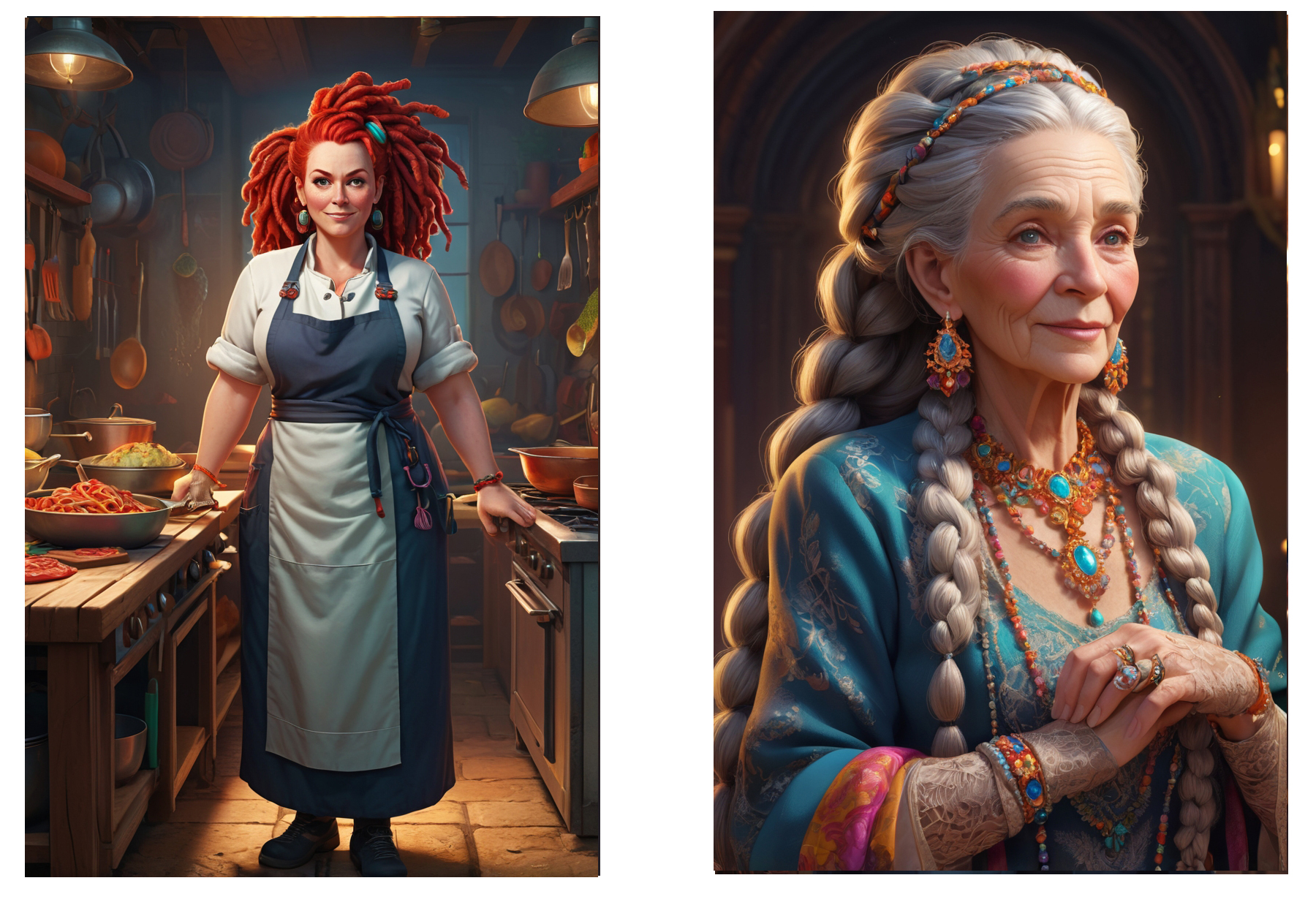 Эта яркая дама с рыжими дредами и крепкими руками - хозяйка ресторации "Магнолия" Акана, вы с ней уже знакомы. Рядом с ней пожилая леди, которую вам еще только предстоит встретить. Это Тинииту, хранительница преданий и пророчеств.